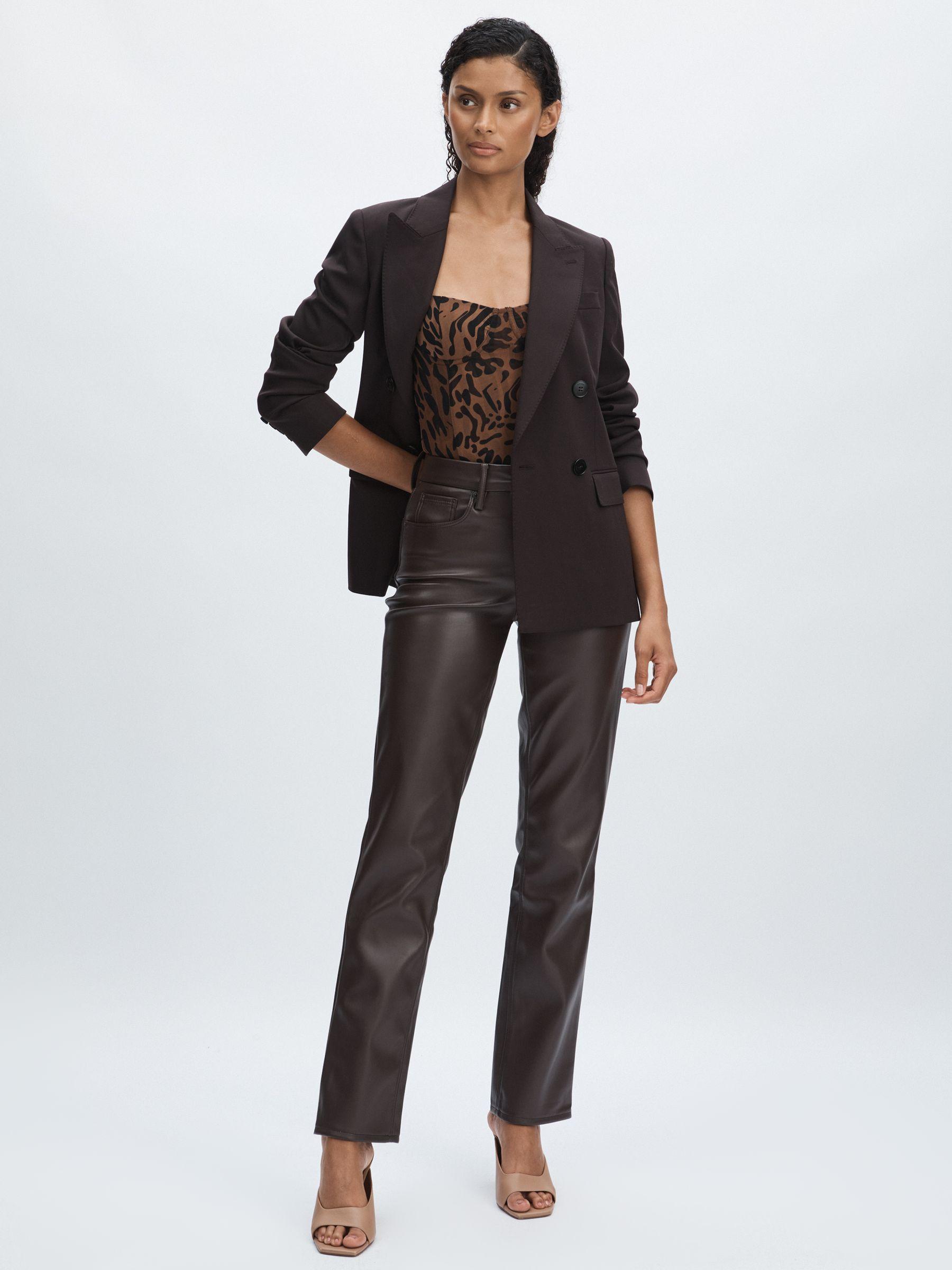 The classic Good Icon trousers are given a modern update with Good American’s Better Than Leather material. The stylish pair are fitted throughout the hips with a timeless straight leg opening. Faux leather Straight leg High rise Five pockets Front button and zip Good American, curated by Reiss, is a collection designed to work perfectly with your existing Reiss wardrobe. Innovative, solution-led denim and lifestyle garments champion inclusivity, enhance curves and represent body acceptance. By women, for women.