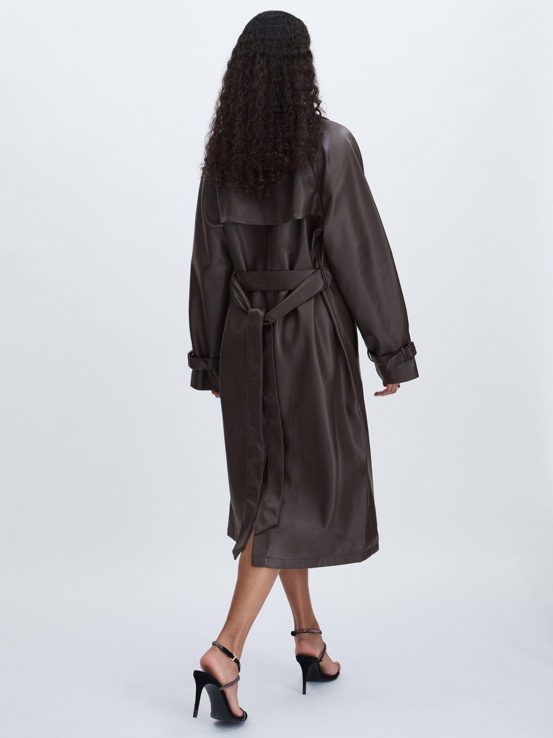 The Good American faux leather trench coat offers a modern take on a classic style. Its double-breasted front and tied belt create a structured, flattering silhouette, whilst adjustable cuffs and a storm vent add practical edge. Faux leather. Double-breasted Tied belt. Side slip pockets. Buckle-strap adjustable cuffs. Storm vent Single vent to reverse. Lined. Good American, curated by Reiss, is a collection designed to work perfectly with your existing. Reiss wardrobe. Innovative, solution-led denim and lifestyle garments champion inclusivity, enhance curves and represent body acceptance. By women, for women.