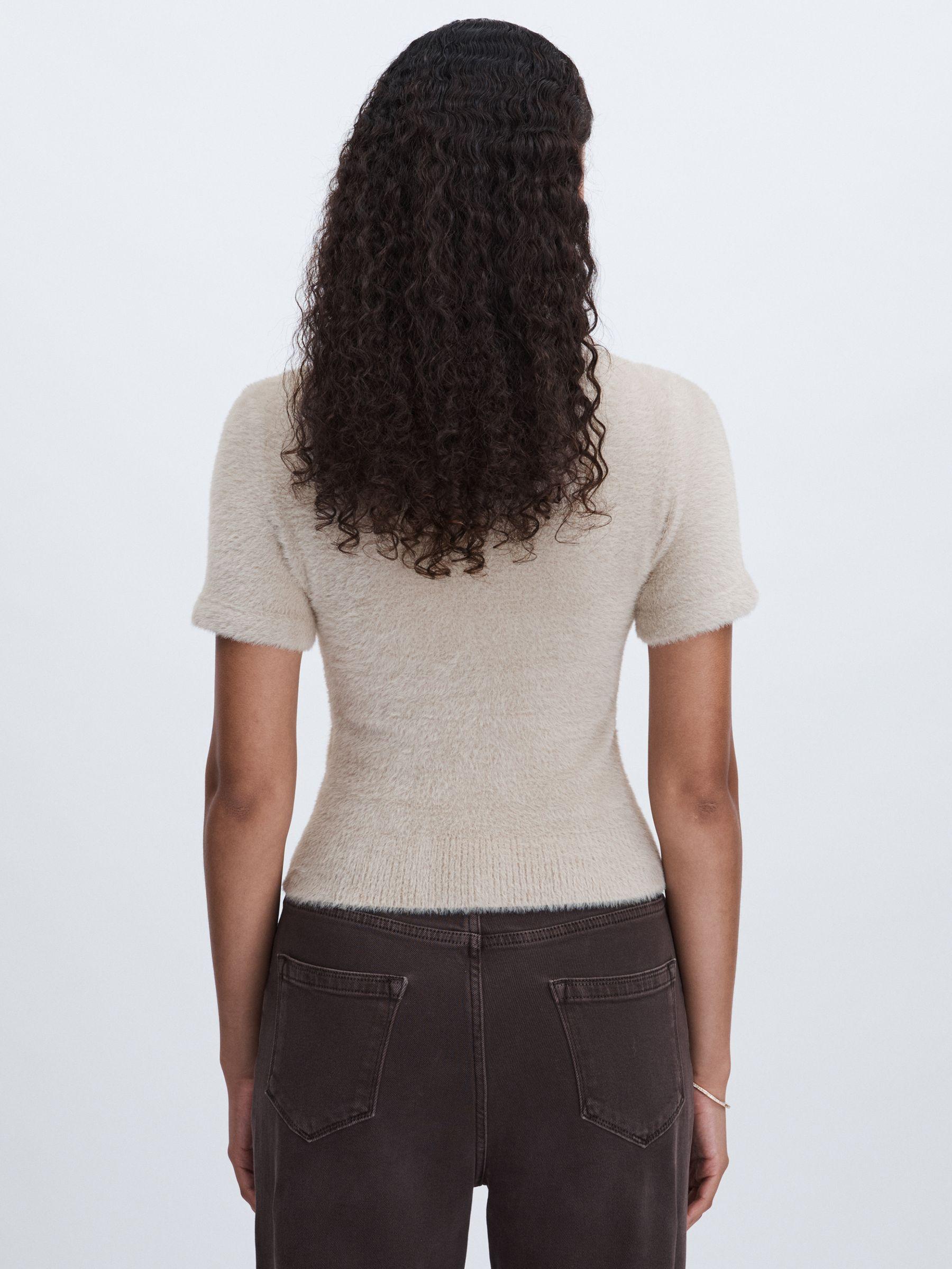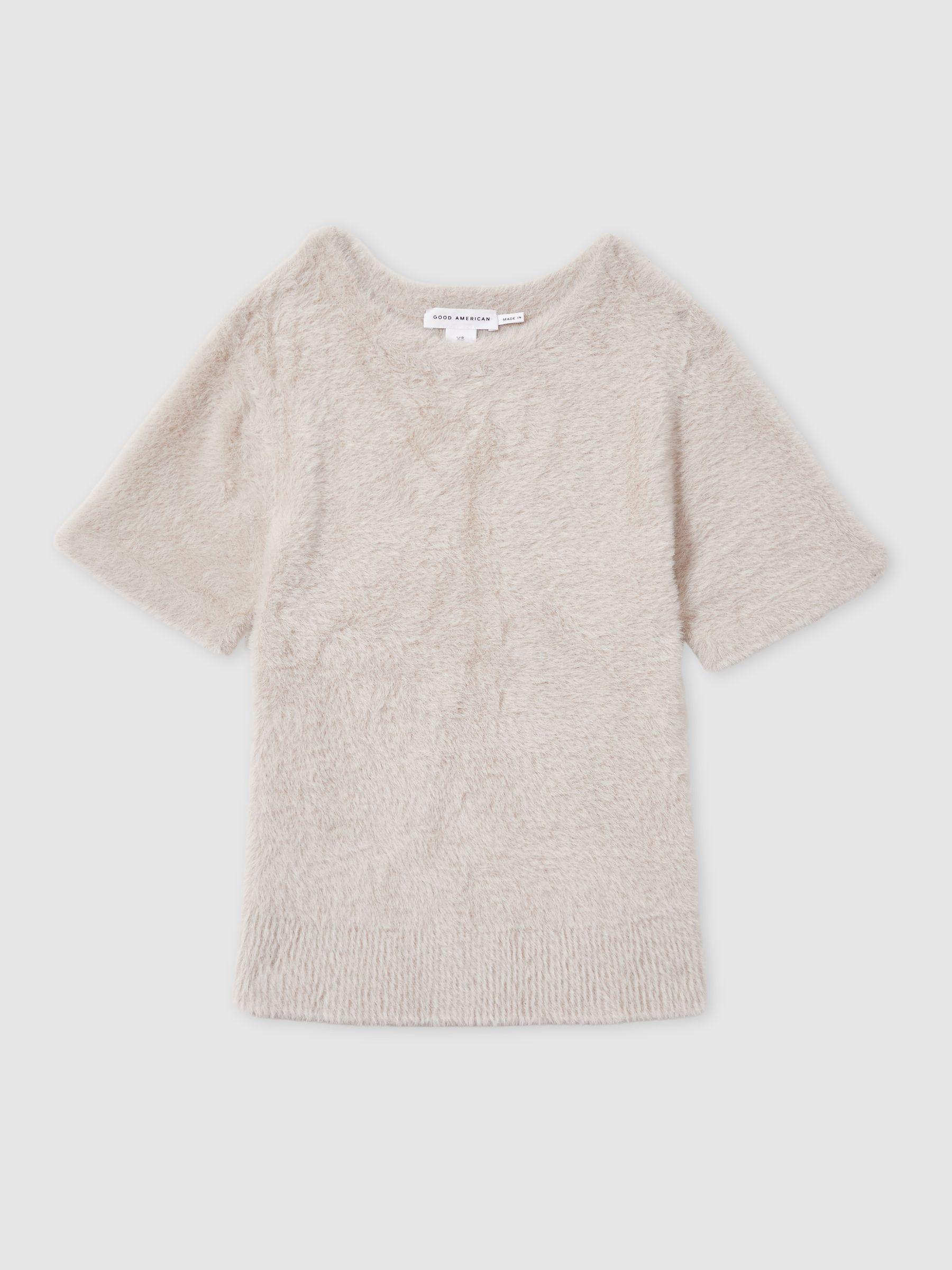 The furry texture of Good American’s baby tee adds a tactile element to this staple style. Finished with a classic crew neck and a subtly ribbed hem, it offers a cosy yet polished look. Furry texture. Crew neck. Ribbed hem Cropped. Good American, curated by Reiss, is a collection designed to work perfectly with your existing. Reiss wardrobe. Innovative, solution-led denim and lifestyle garments champion inclusivity, enhance curves and represent body acceptance. By women, for women.