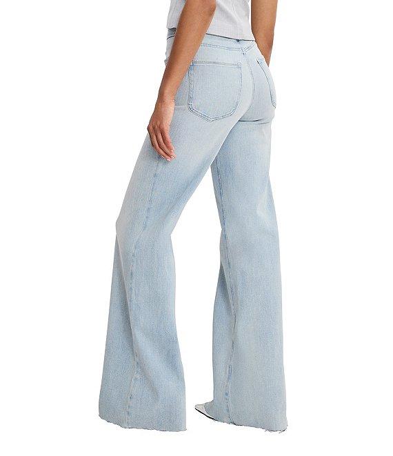From Good American, these jeans feature: Denim fabrication High-rise waistline Front zip-fly closure Classic 5 pocket styling Wide leg silhouette Gap proof waistband Approx. 33.5" inseam, 26.5" leg opening, 10 3/4" rise Cotton/polyester/rayon/spandex Machine wash/tumble dry Imported.