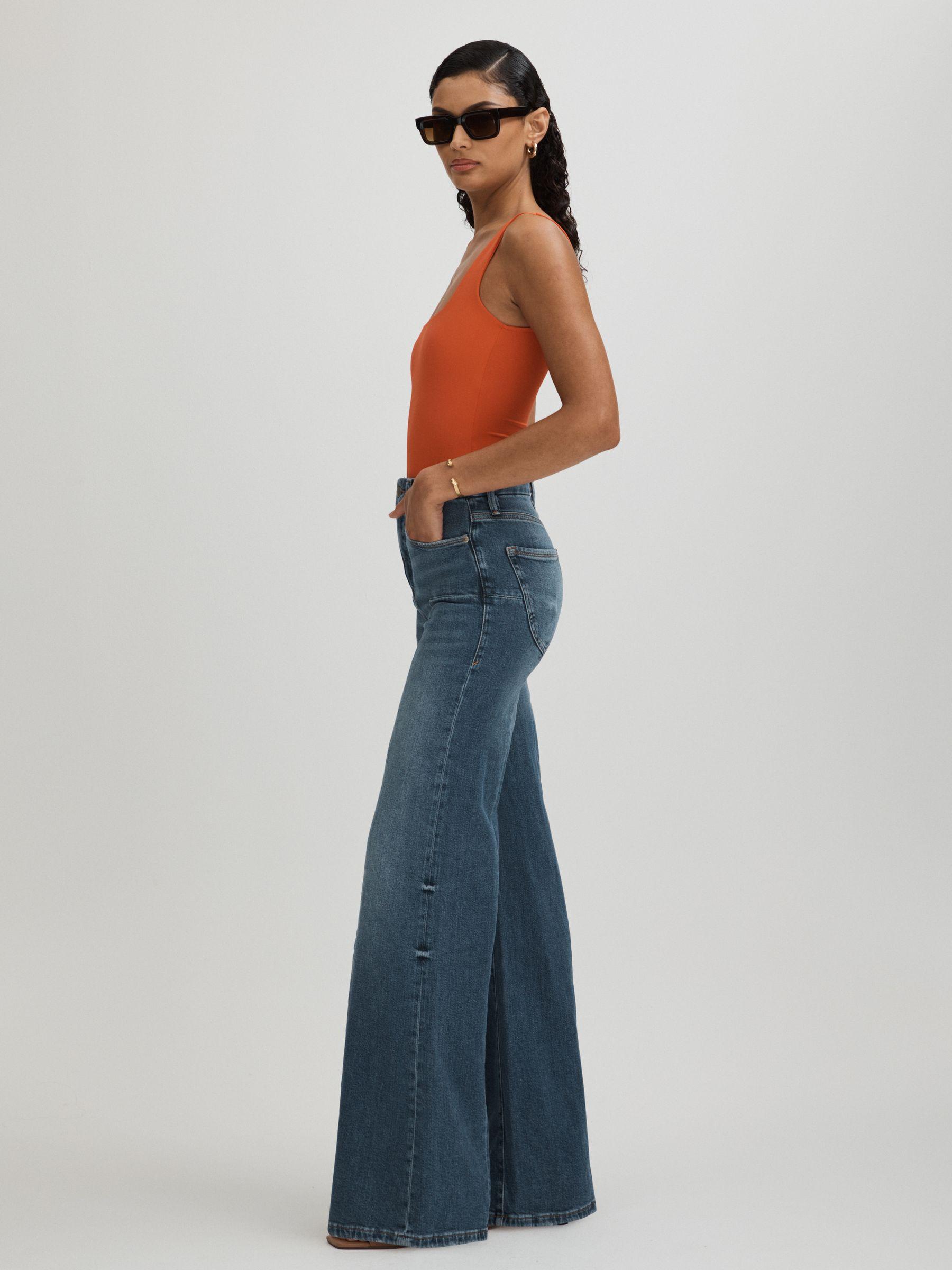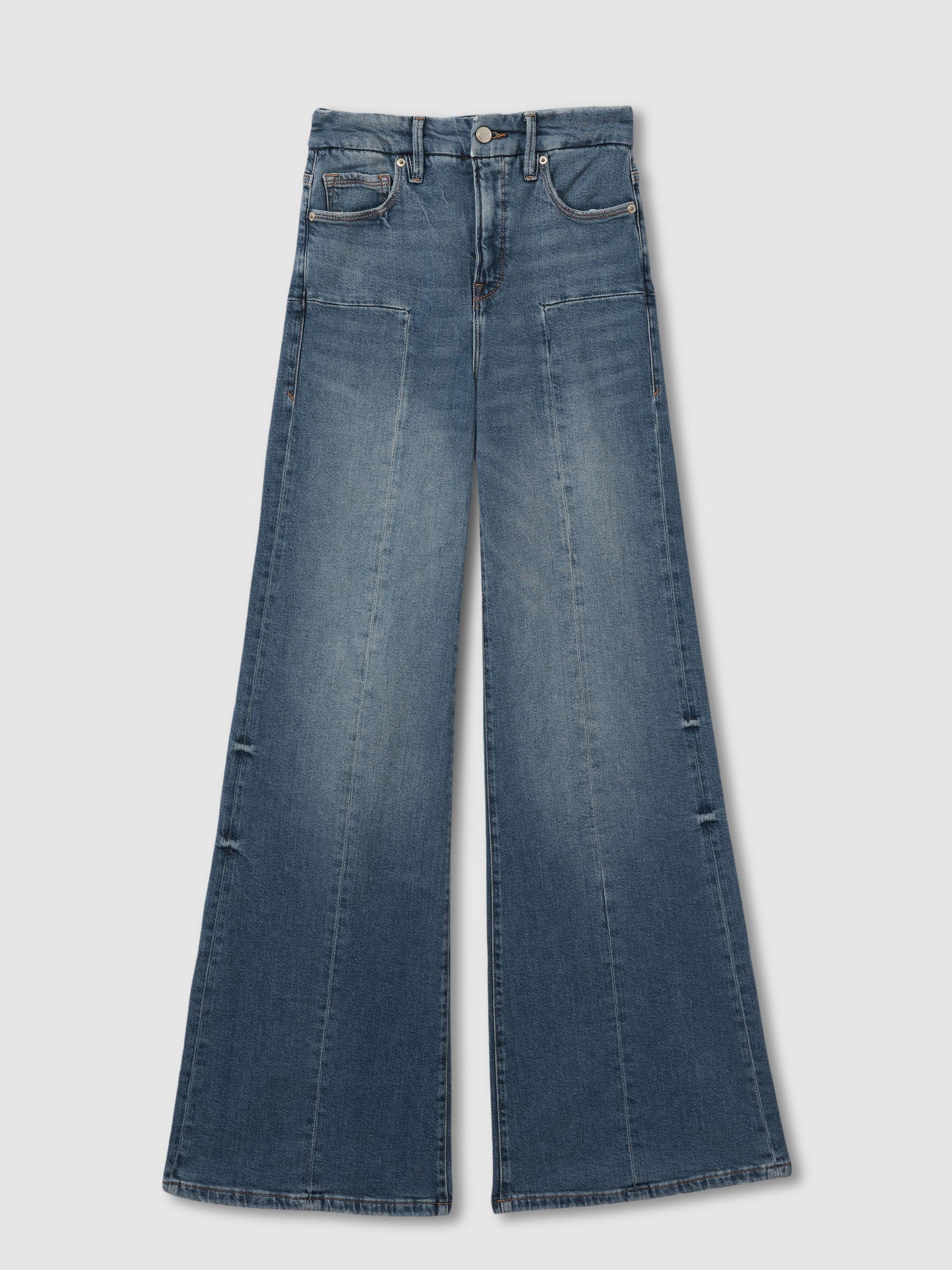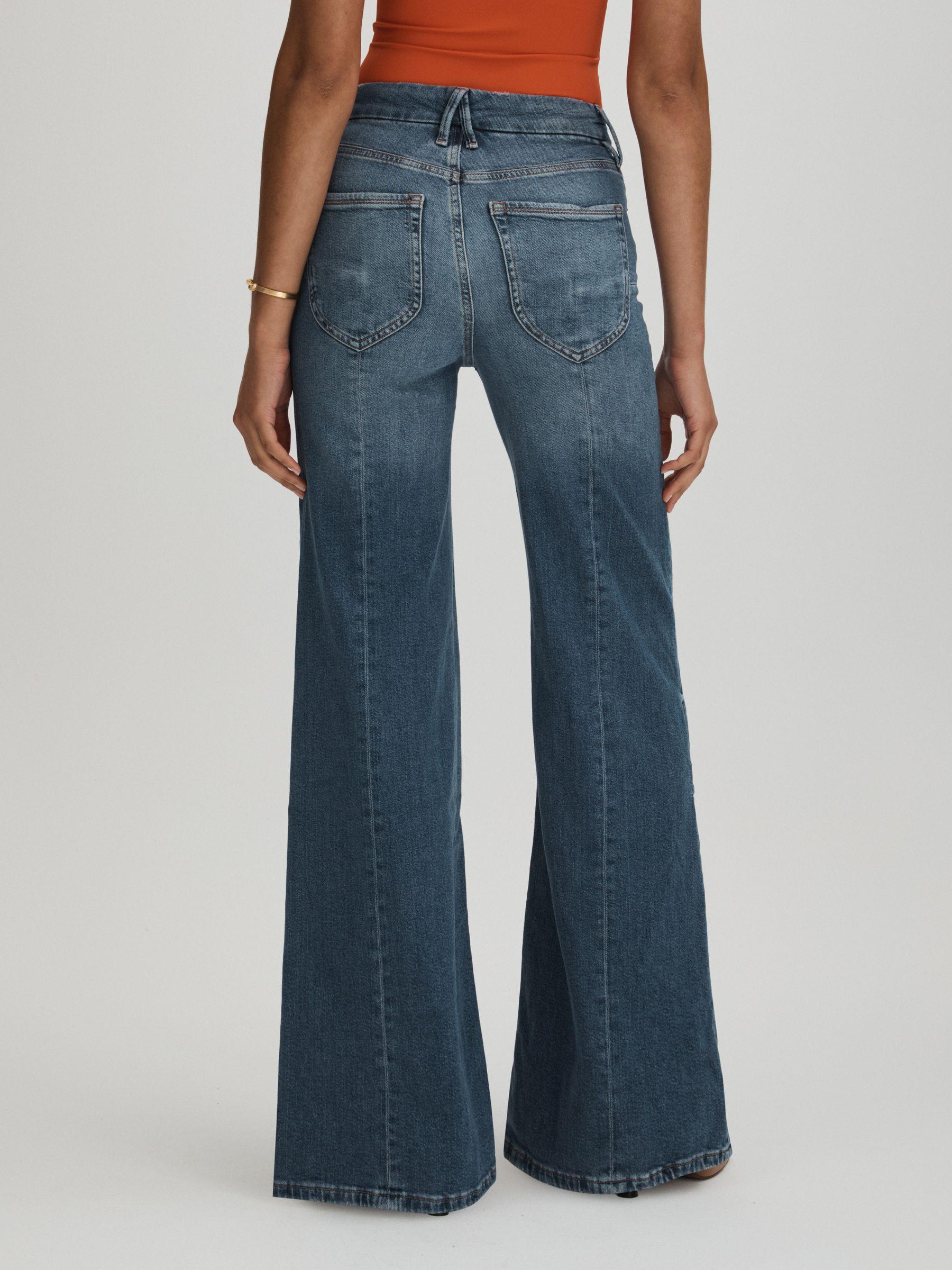 These palazzo jeans are engineered with washed patches throughout for a worn aesthetic. They’re engineered with a gap-proof waistband that smooths the waist, and visible seam detailing completes the pair. High rise Five-pocket style Reinforced belt loops Gap-proof waistband Tummy smoothing technology Visible seam detailing Distressed palazzo hem Good American, curated by Reiss, is a collection designed to work perfectly with your existing Reiss wardrobe. Innovative, solution-led denim and lifestyle garments champion inclusivity, enhance curves and represent body acceptance. By women, for women.