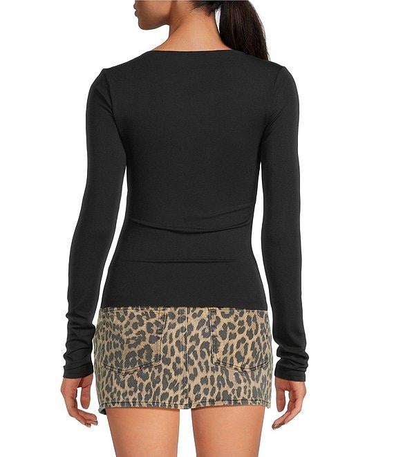 Good American Jersey U Wire Long Sleeve Plunging Neck Jersey Knit Top