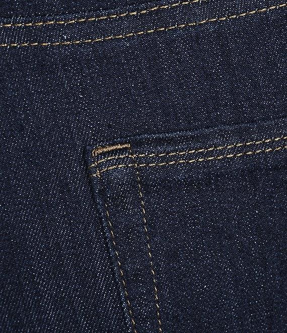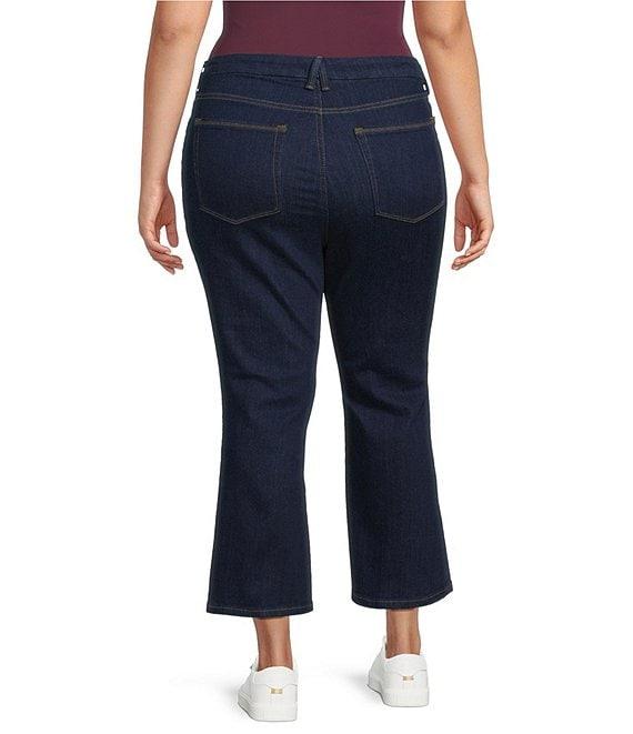 From Good American Plus, these jeans feature: Super stretch denim fabrication Mid-rise waistline Front zip-fly closure Classic 5 pocket styling Mini bootcut silhouette Approx. 26.5" inseam, 18.5 leg opening, 10 3/4" rise Cotton/Elastomultiester/elastane Machine wash/tumble dry Imported.