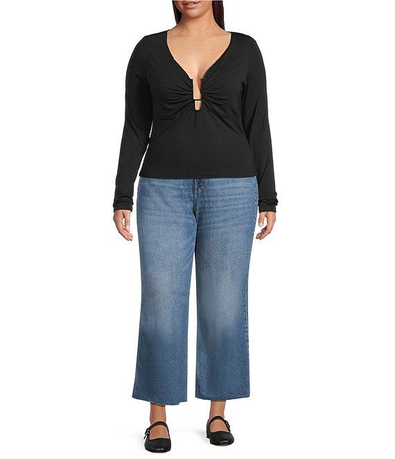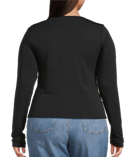 Good American Plus Jersey U Wire Long Sleeve Plunging Neck Jersey Knit Top