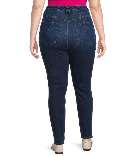 From Good American Plus, these jeans feature: SoftTech denim fabrication Mid-rise waistline Front zip-fly closure Skinny legs Clean hemline Super stretch Classic 5-pockets Gap-proof waistband Reinforced belt loops Tummy smoothing technology Approx. 29" inseam Cotton, T400, Lycra Wash inside out in cold water with like colors. Tumble dry on low. Imported.