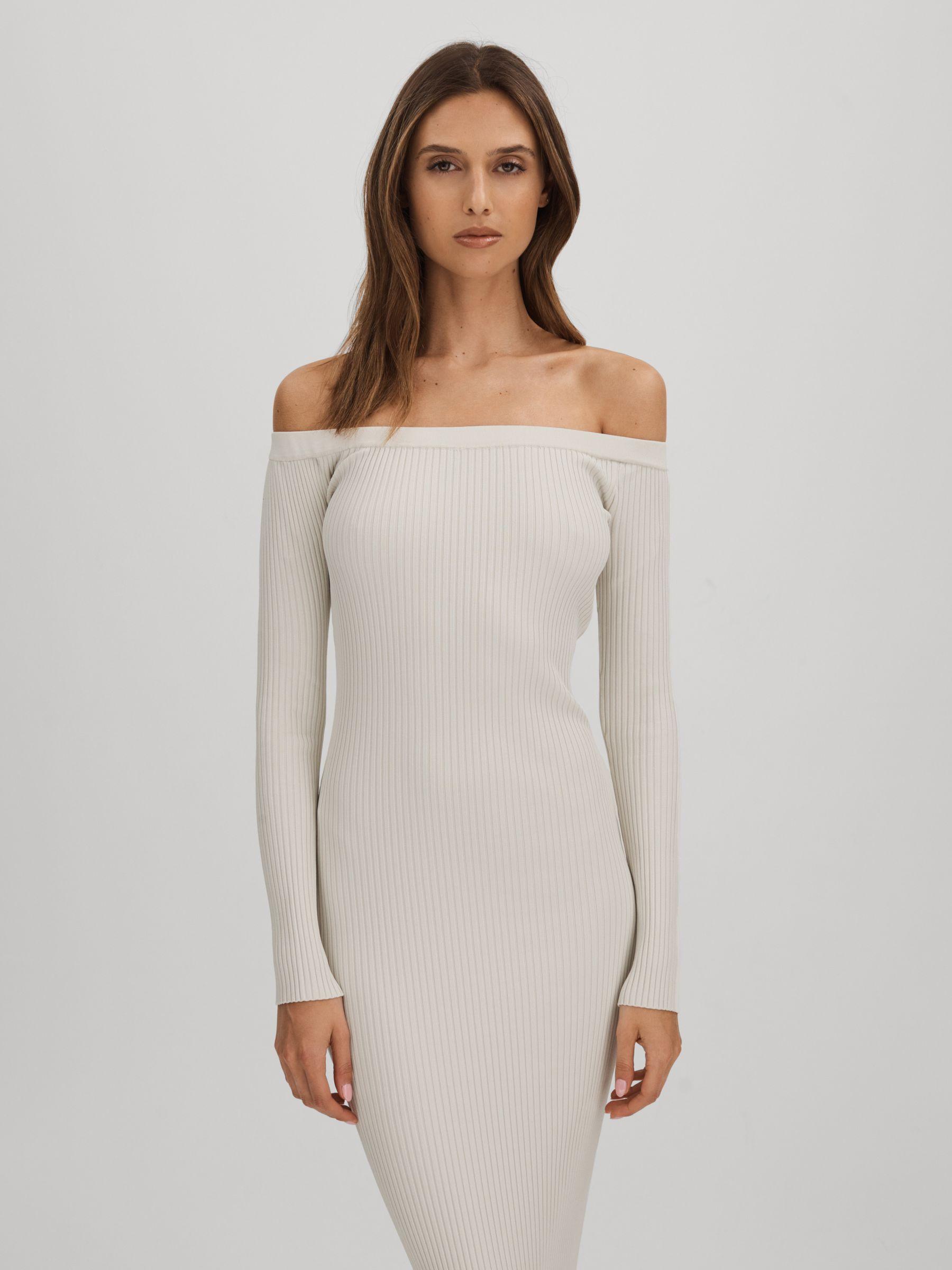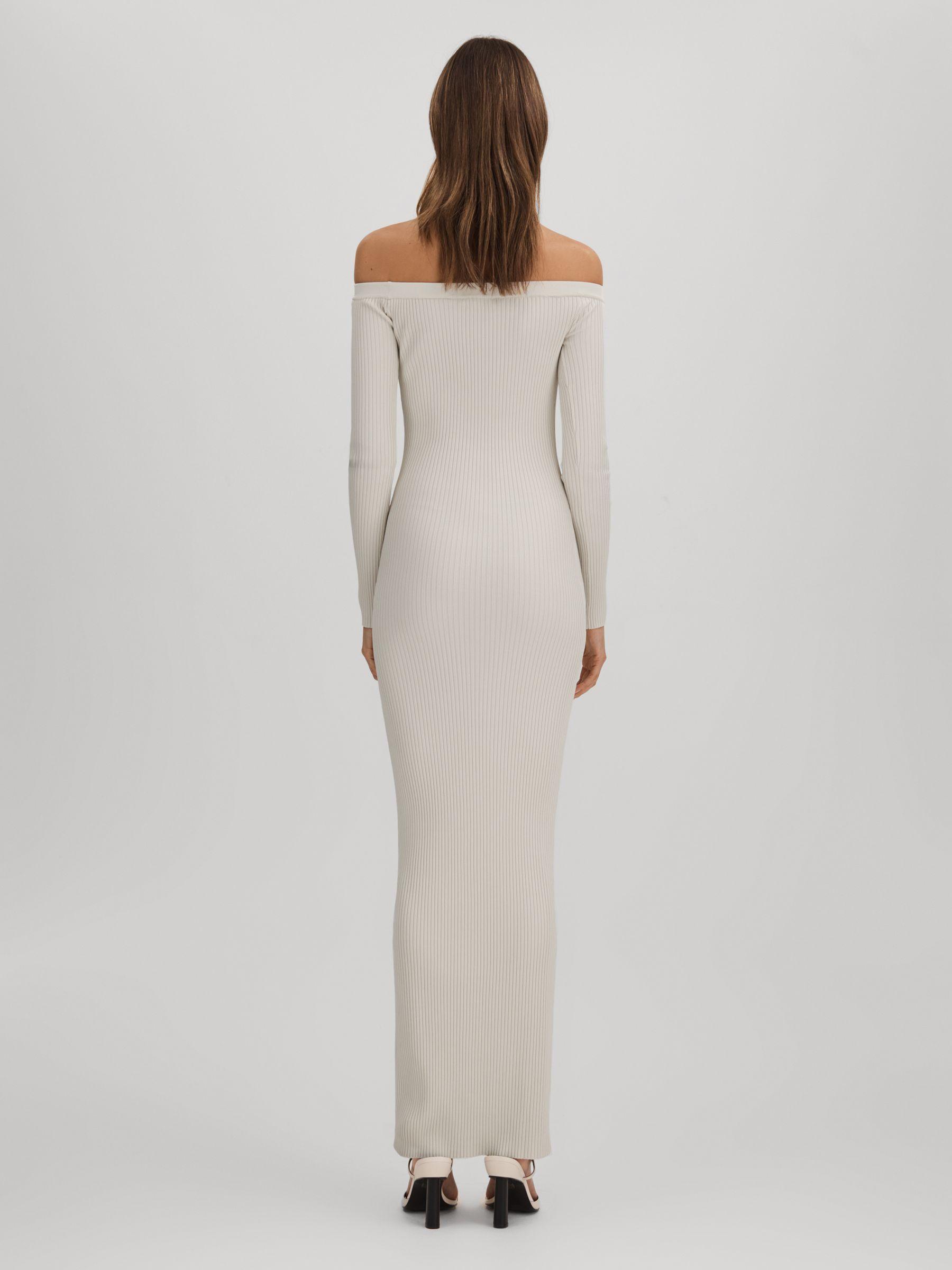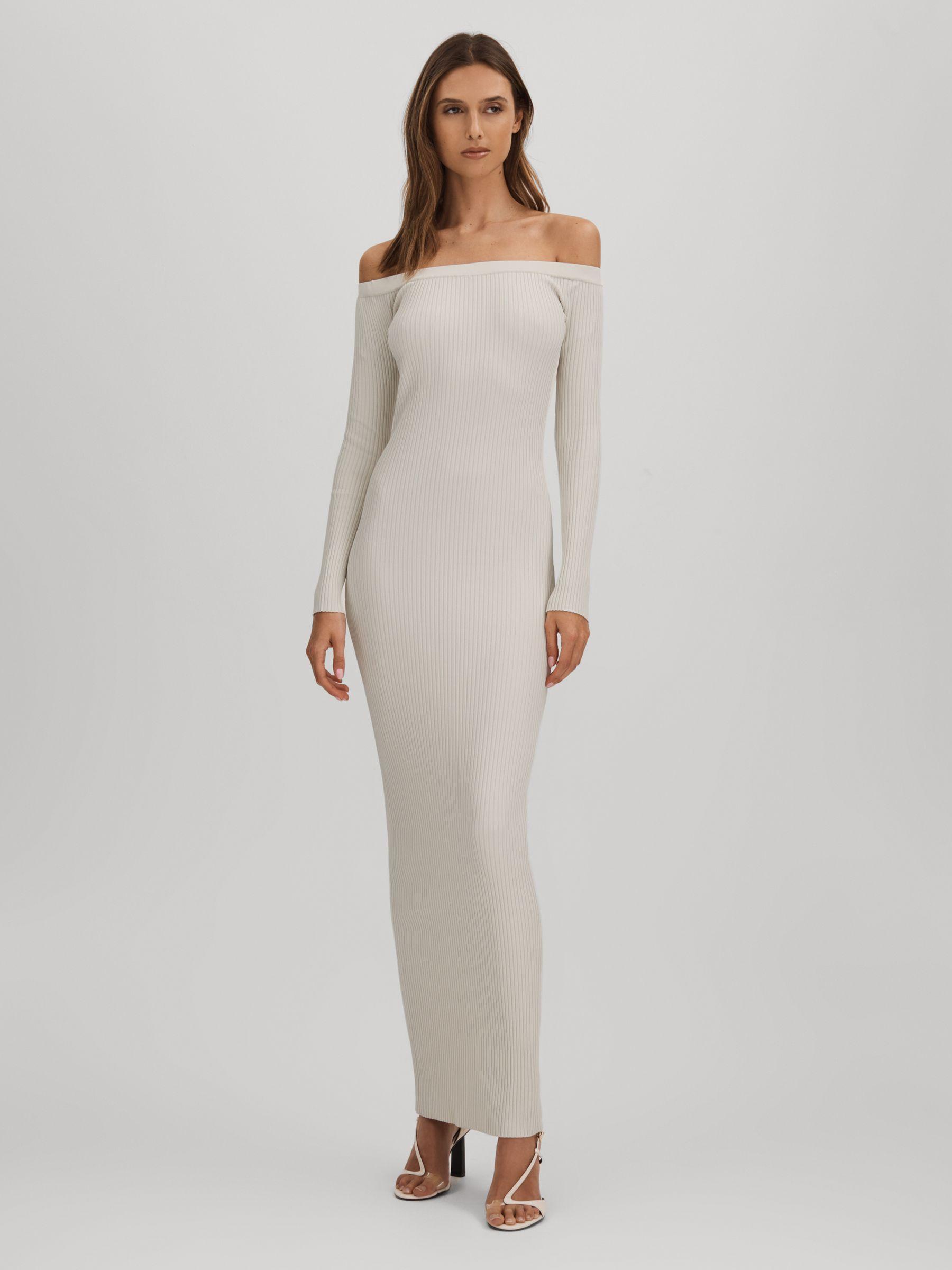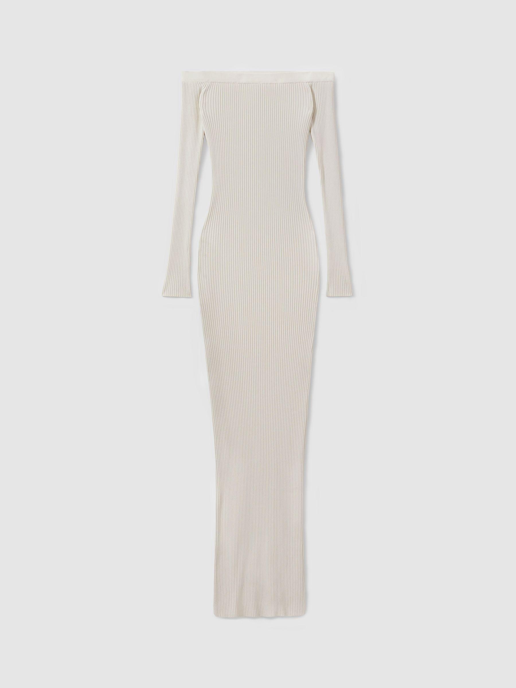 This slinky ribbed dress offers ample stretch and coverage, smoothing the body and finishing at the ankles. It’s designed with a flattering off-the-shoulder neckline and long, sleek sleeves. Slinky ribbed knitted construction Elasticated off-the-shoulder neckline Bodycon fit Maxi length Good American, curated by Reiss, is a collection designed to work perfectly with your existing Reiss wardrobe. Innovative, solution-led denim and lifestyle garments champion inclusivity, enhance curves and represent body acceptance. By women, for women.