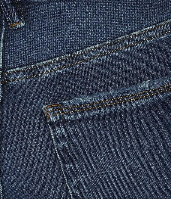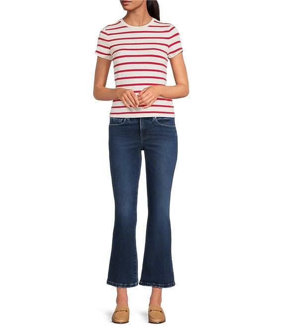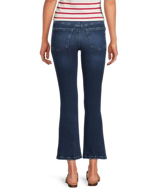 From Good American, these jeans feature: SoftTech super stretch denim fabrication High-rise waistline Button front zipper fly closure Classic 5 pocket Bootcut silhouette Cropped length Approx. 26.5" inseam Cotton, T400, Lycra Denim Machine wash cold, tumble dry Imported.