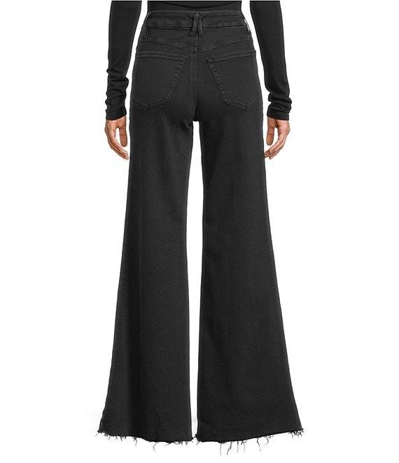 From Good American. this jean features: SoftTech denim fabrication High-rise waistline Wide leg silhouette Raw hemline Comfort stretch Classic 5-pocket Front zip-fly closure Gap-proof waistband Reinforced belt loops Tummy smoothing technology Approx. 33" inseam Cotton/T400/spandex Wash inside out in cold water with like colors. Tumble dry on low. Imported.