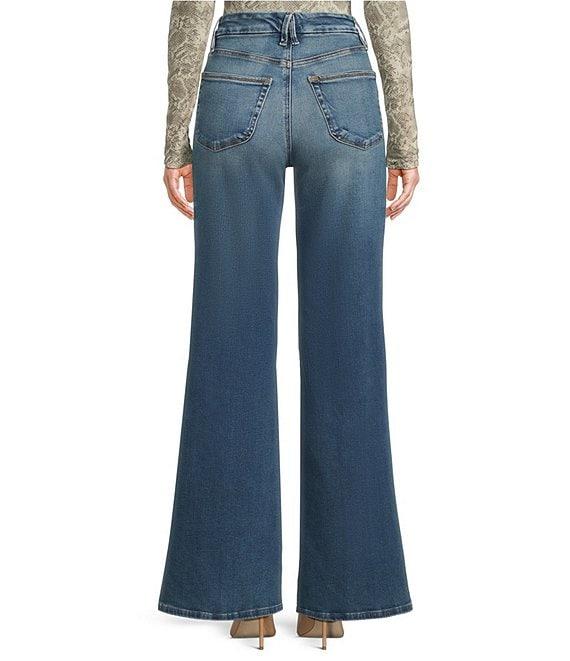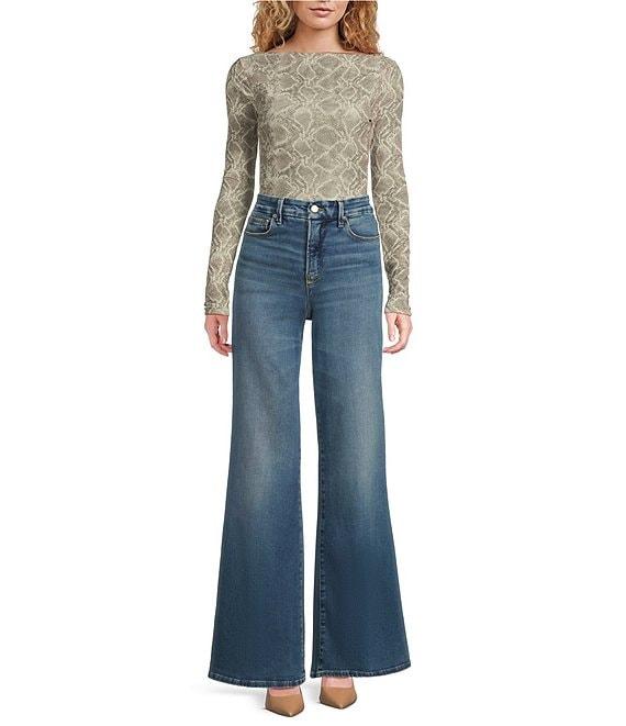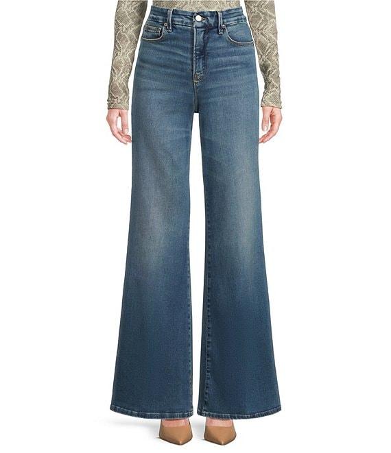 From Good American, these jeans feature: SoftTech denim fabrication High-rise Wide legs Cropped length Front patch pockets Clean hem Super stretch Classic 5-pockets Front zip-fly closure Gap-proof waistband Reinforced belt loops Tummy smoothing technology Approx. 33.5" Cotton, T400, Lycra Machine washable Imported.
