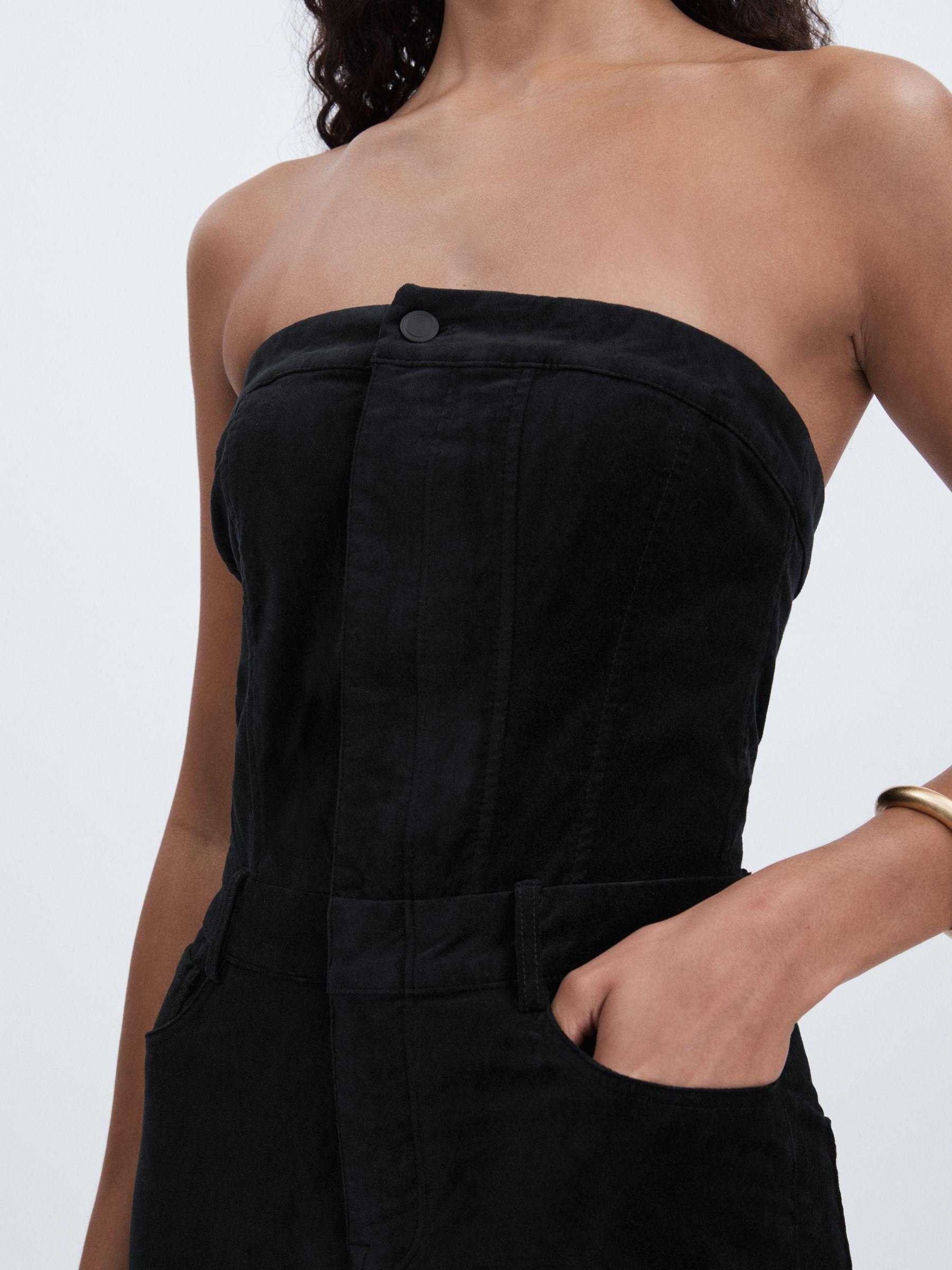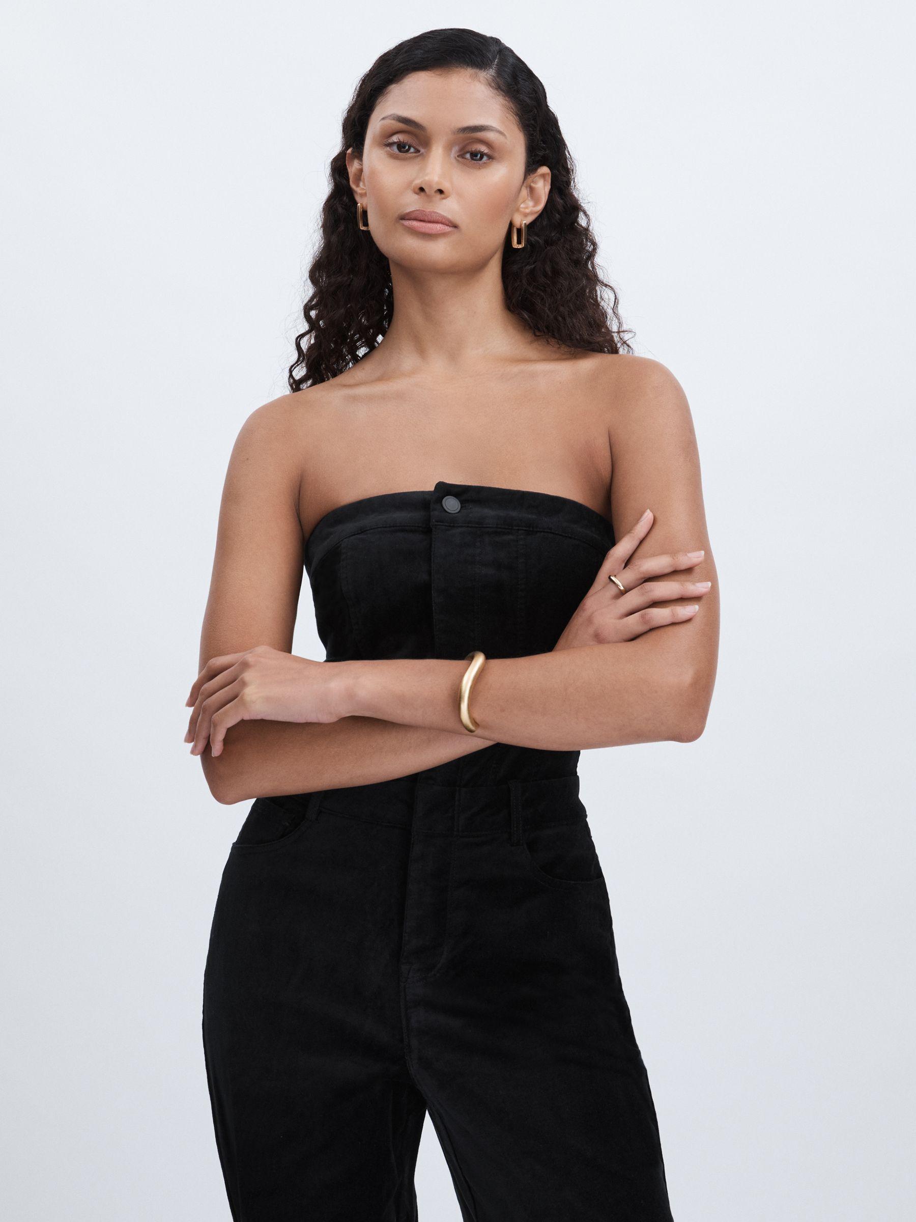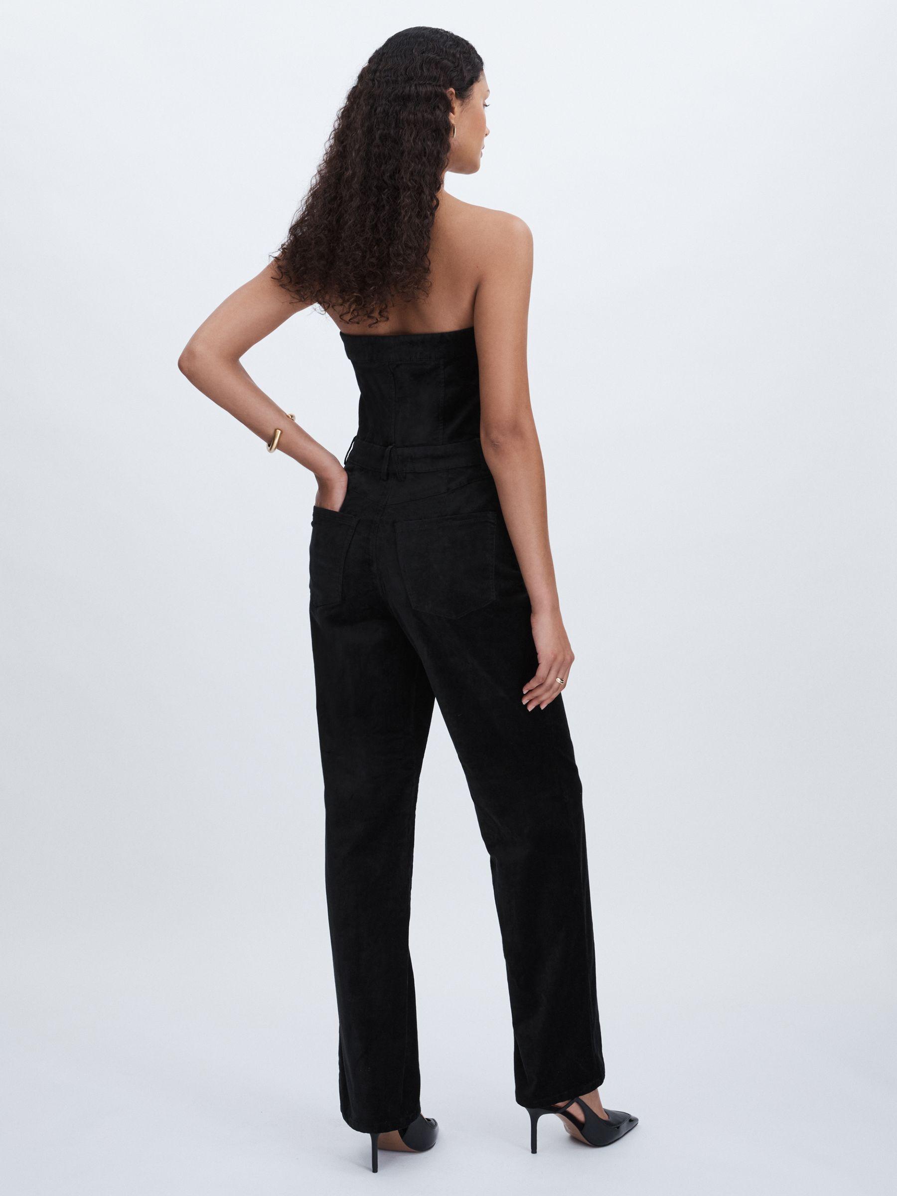 The Fit For Success jumpsuit is a strapless design created with Good American’s signature waist-cinching technology for an hourglass silhouette. The all-in-one is crafted from ultra-smooth velvet with a hint of stretch for added comfort. Cotton-blend velvet Strapless with non-slip tape Straight leg Front zip with press-stud placket Belt loops Five pockets Good American, curated by Reiss, is a collection designed to work perfectly with your existing Reiss wardrobe. Innovative, solution-led denim and lifestyle garments champion inclusivity, enhance curves and represent body acceptance. By women, for women.