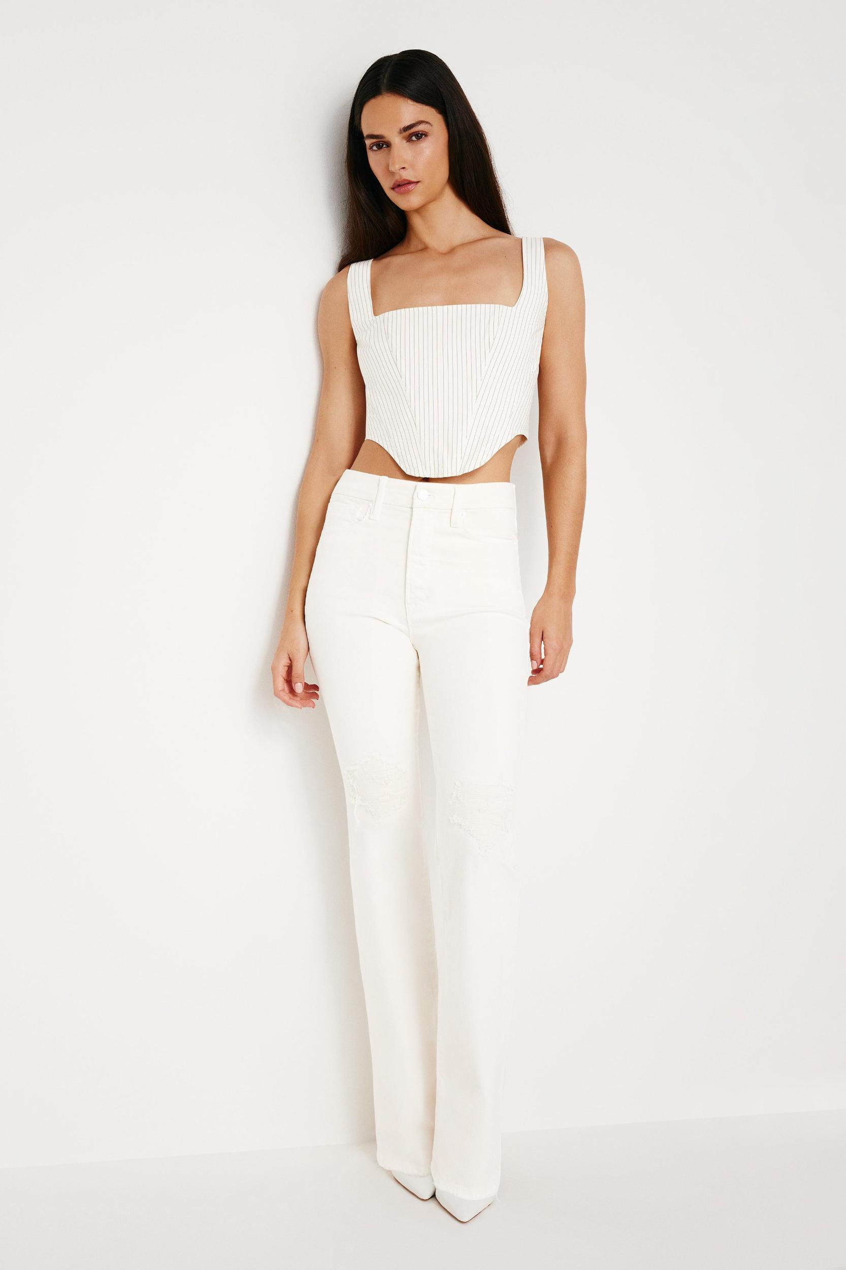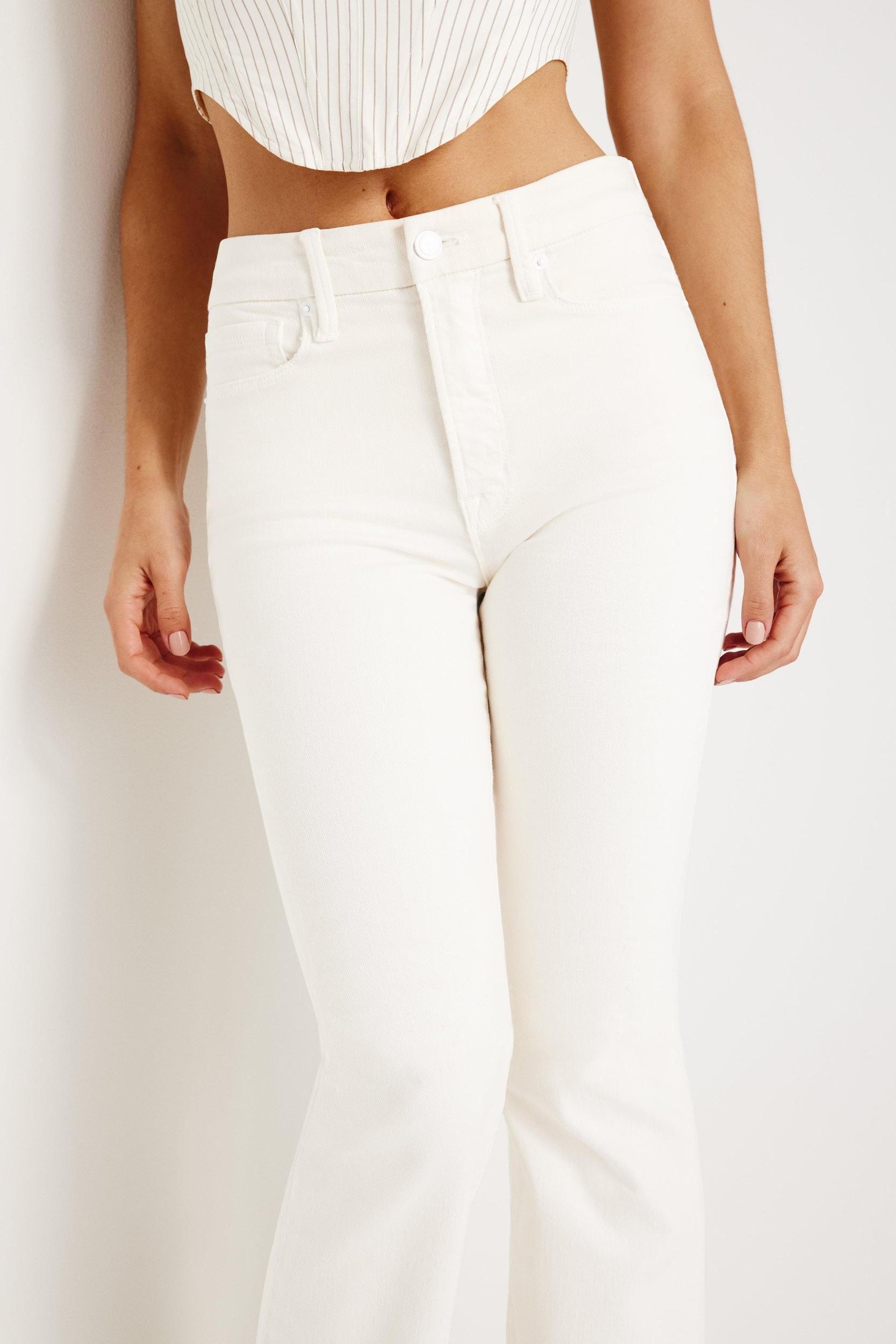 We took our fan favorite Good Classic and gave it a boot cut – this is the new "it" fit! Designed to make your legs look extra long, so you'll instantly look taller than you are! The Good Classic Light Compression Bootcut Jeans are crafted from our comfort stretch denim, that has a classic denim look and feel, but with a little added stretch for comfort. High-rise Bootcut legs Front zip-fly closure Classic 5-pockets Gap-proof waistband Reinforced belt loops Tummy smoothing technology Clean hem White wash Inseam: 33" Fabric: 72% Cotton, 20% Recycled Cotton, 6% Polyester, 2% Elastane Care: Machine wash cold, inside out. Dry flat or hang dry. For more info, please see our denim care guide. Model size 0 is 5'9 and wearing size 0 Model size 16 is 5'9 and wearing size 16