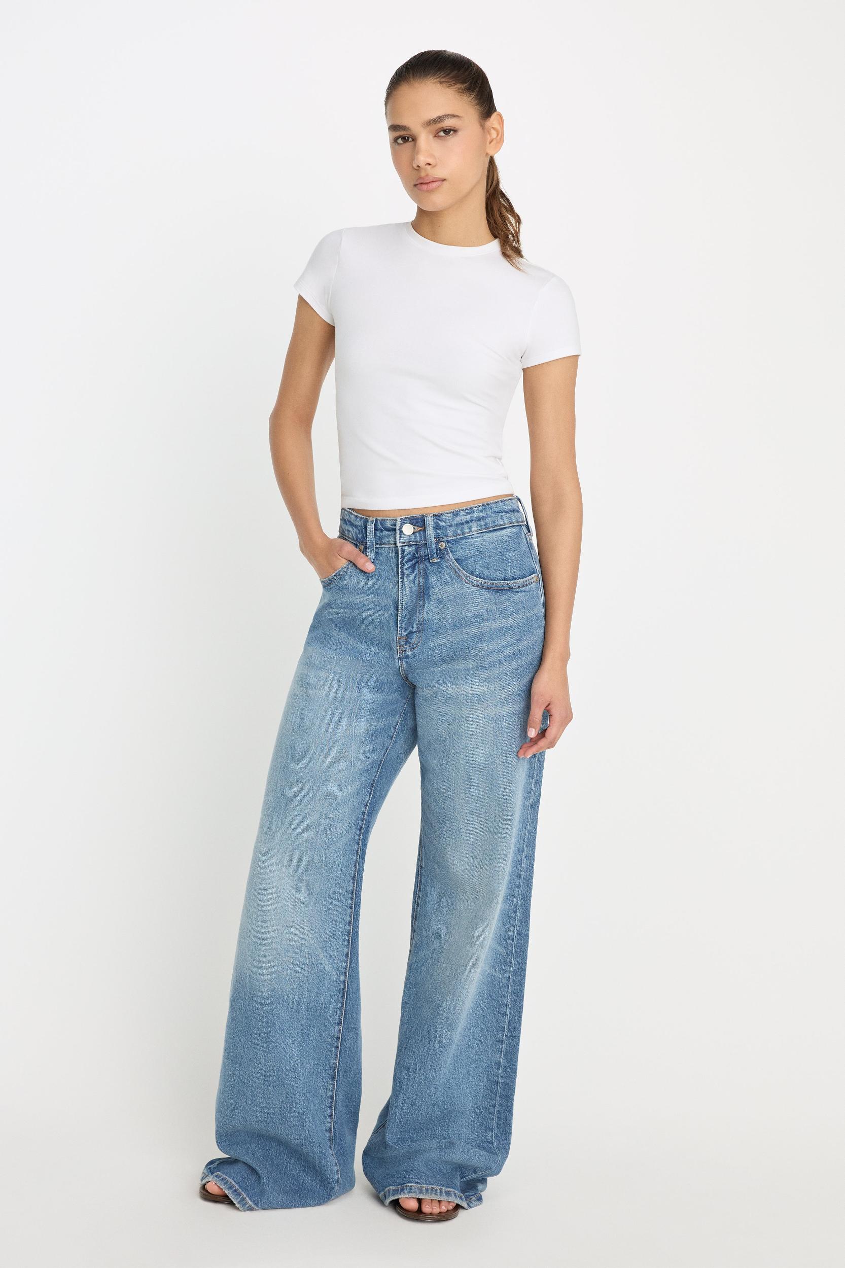 The ultimate lounge around jeans, featuring a mid-rise waist and wide relaxed legs for effortless style and maximum comfort. Crafted from our comfort denim with a hint of stretch, these jeans offer a timeless and comfortable fit that holds its shape over time. Mid-rise Relaxed legs Front zip-fly closure Classic 5-pockets Gap-proof waistband Reinforced belt loops Tummy smoothing technology Medium blue wash Inseam: 34” Fabric: 69% Cotton, 30% TENCEL™, 1% Elastane Care: Machine wash cold, inside out. Dry flat or hang dry. For more info, please see our denim care guide. Model size 0 is 5'9 and wearing size 0 Model size 16 is 5'9 and wearing size 16