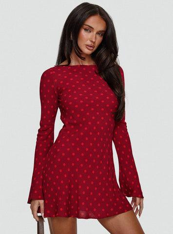 Good Graces Long Sleeve Mini Dress Red Dot