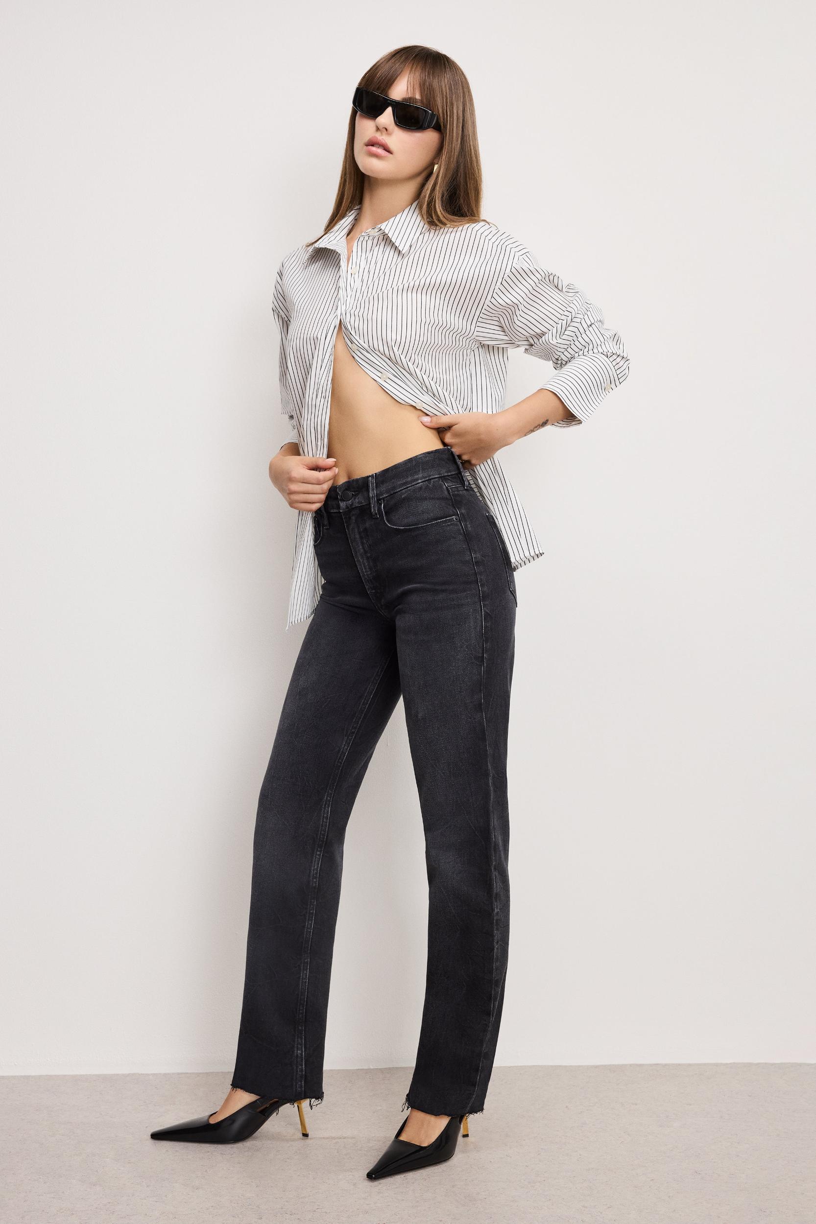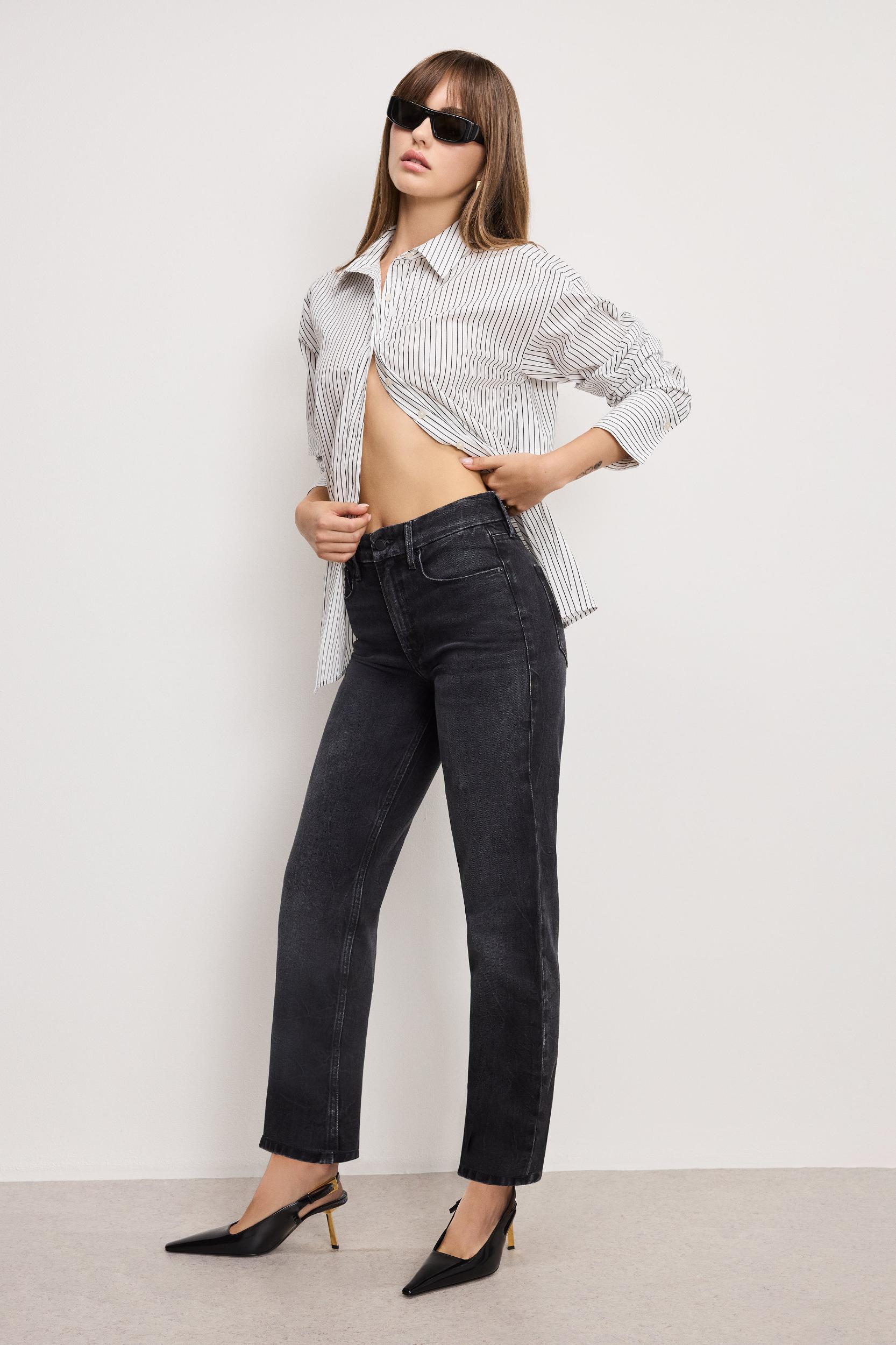 An iconic straight fit with vintage inspired straight legs, that will have you straight up obsessed. Jeans don’t get more iconic than this straight style that gives you legs for days, and holds you in, in the sexiest way possible. Good Icon Straight Ankle Jeans feature a high-rise, designed to be fitted through your hips and thighs with a timeless straight leg from thigh to ankle. Crafted from comfort denim, our Good Icon Straight Jeans offer exceptional stretch and shape retention, ensuring a comfortable fit that moves with you throughout the day. High-rise Straight legs Ankle length Clean hem Comfort stretch Classic 5-pockets Front zip-fly closure Gap-proof waistband Reinforced belt loops Tummy smoothing technology Inseam: 28" Model is 5'8 and wearing size 0 Fabric: 62% Cotton, 33% Tencel, 4% T400, 1% Elastane Care: Wash inside out in cold water. Hand wash with like colors. Do not bleach. Hang or lay flat to dry. Do not dry clean.
