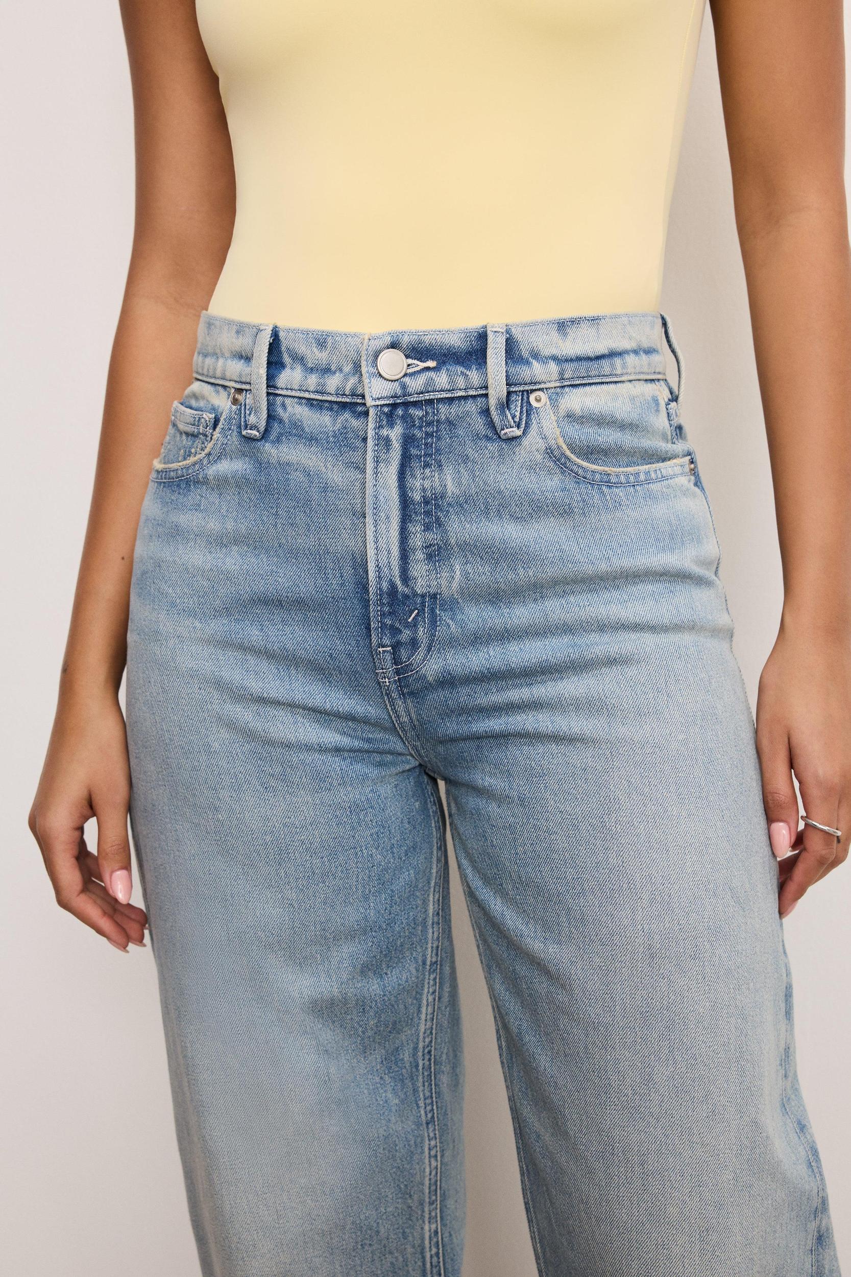 Elevate your denim drawer with Good Standard Barrel Jeans, designed with a super high-rise waistline and relaxed legs that gently taper at the ankles. With a super high-rise waistline and relaxed legs that curve to taper at the ankles, these statement jeans blend comfort and style effortlessly. These statement jeans blend comfort and style effortlessly, offering a modern silhouette with a super-high rise waistline that flatters every body shape. Crafted from our signature rigid denim, they offer a structured fit with exceptional shape retention, even after multiple washes and wears. The fit is relaxed yet structured, creating a versatile look that works for both casual and elevated styling. • Super high-rise • Tapered legs • Relaxed Fit • Rigid denim • Front zip-fly closure • Classic 5-pockets • Reinforced belt loops • Tummy smoothing technology • Inseam: 32" • Fabric: 75% Regenerative Cotton, 25% recycled cotton • Care: Machine wash cold, inside out. Dry flat or hang dry. For more info, please see our denim care guide. • Model size 0 is 5'9 and wearing size 0