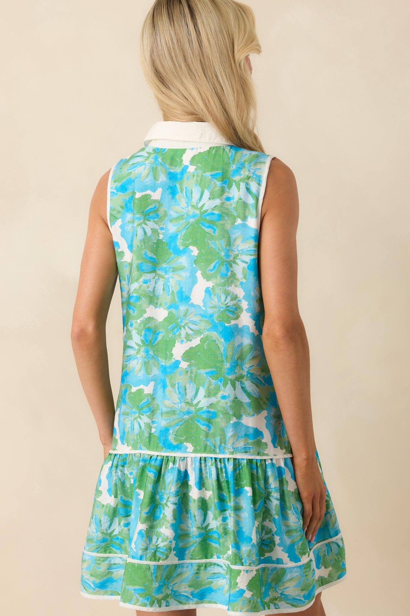 The Good Things Coming Green Floral Print Mini Shirt Dress is perfect for days filled with optimism and plans ahead. Fresh and full of charm, it’s an easy choice for casual outings, brunch dates, or any moment when you want your style to reflect a bright outlook. This mini dress features a green and blue watercolor floral print, white collar neckline, white contrast trim throughout, functional button front, and functional pockets.