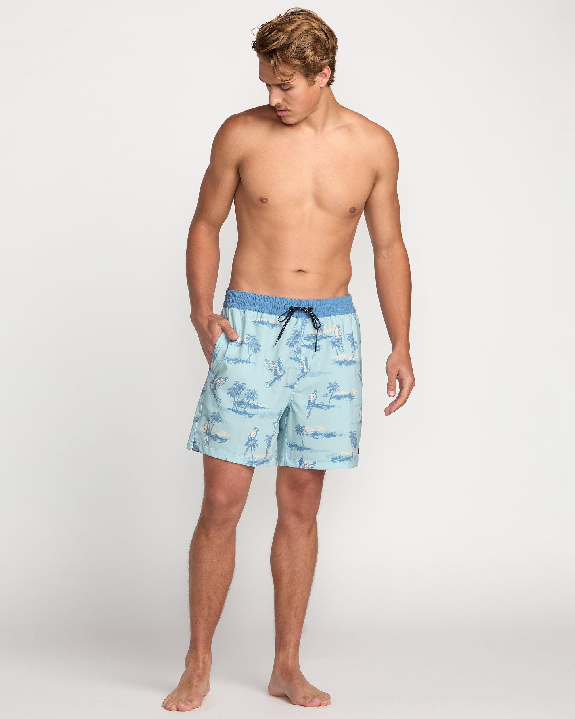 Good times await with these lightweight poly cotton trunks. Stretchy, breathable fabric and an elastic waist keep you comfy, while a 16" layback cut and pockets keep it mellow. Featured here in the Blue colorway. Features Poly Cotton Stretch / Pro Stretch 16" Layback Fit Back Pocket Side pockets at side seam Elastic Waist Woven label branding