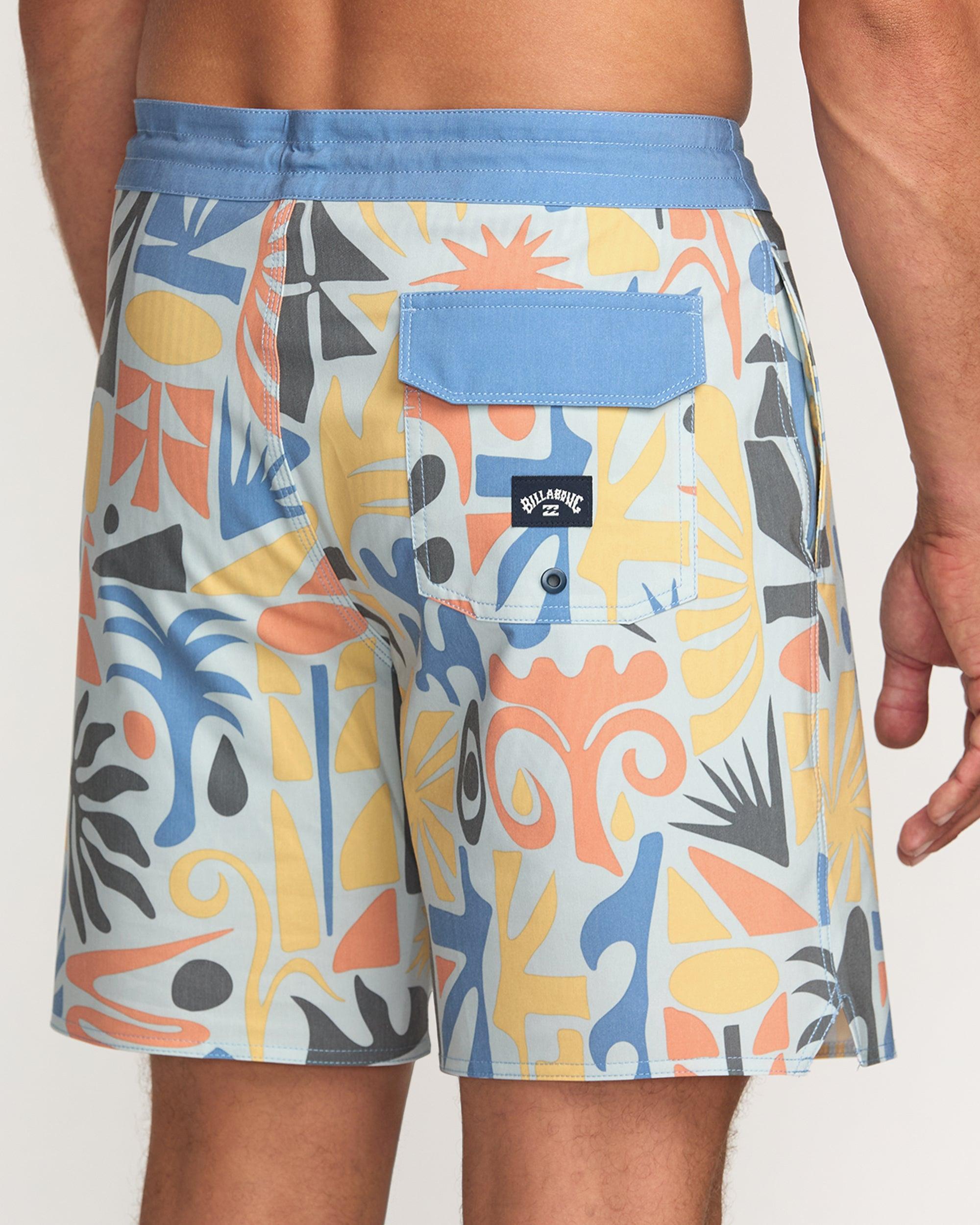 Lightweight yet durable poly-cotton stretch boardshorts with a versatile 18" lo tide length. Featuring handy back patch and side seam pockets, plus a secure drawstring waist, these Billabong shorts were made for endless summer adventures. Featured here in the multicolor colorway. Features Poly Cotton Stretch / Pro Stretch 18" Lo Tide Fit Back patch pocket Pockets at side seam Fixed Waist Woven label branding