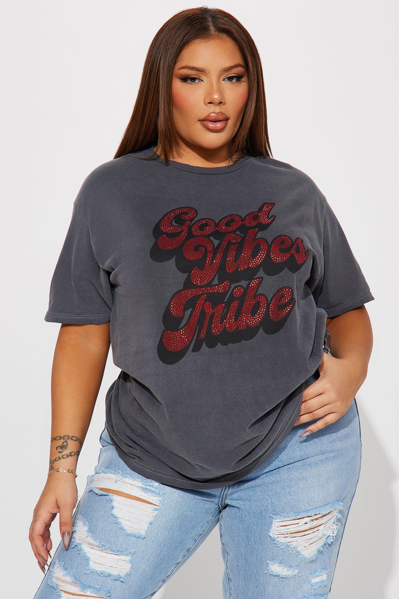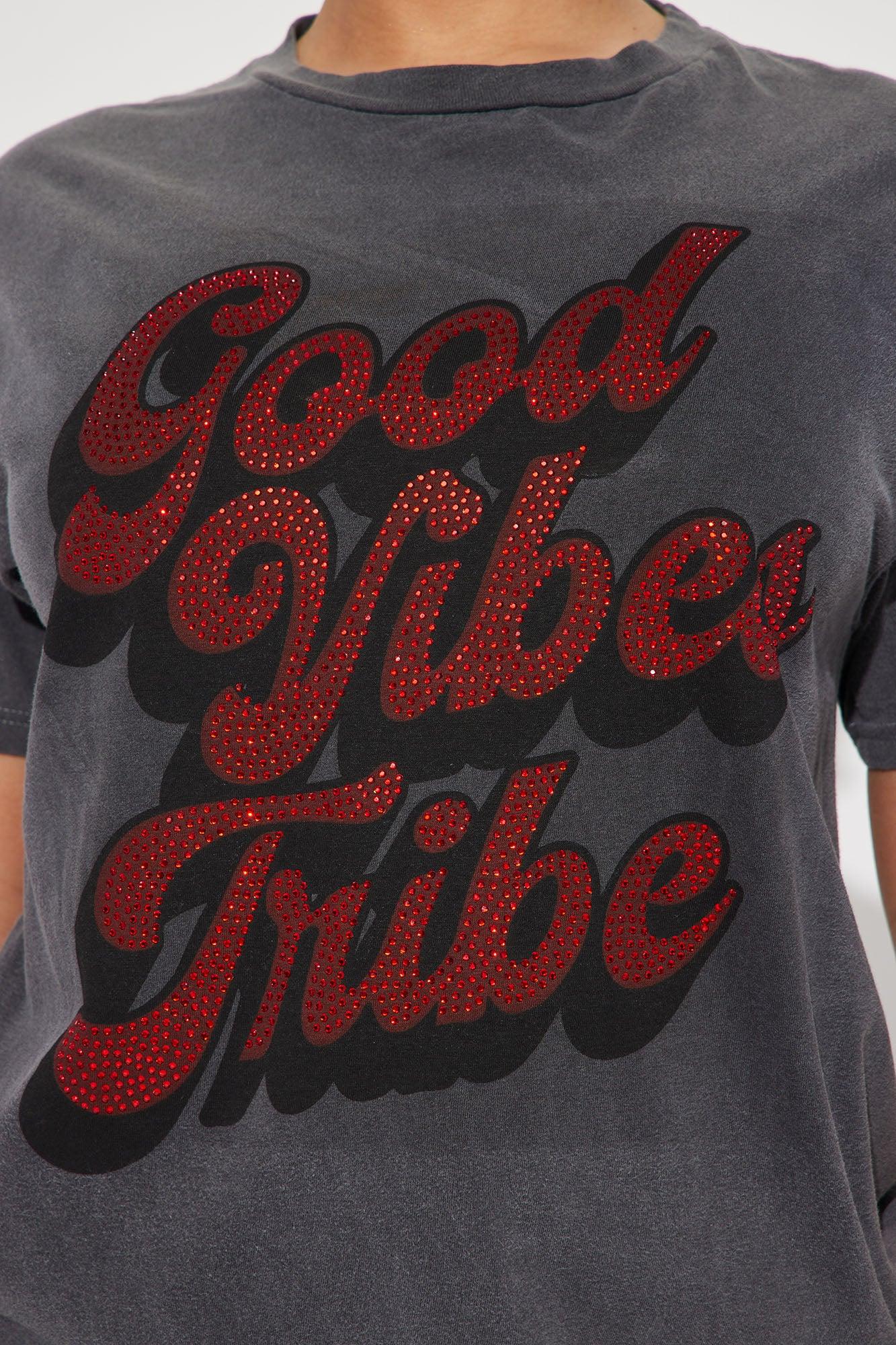 Good Vibes Tribe Rhinestone Tshirt - Charcoal
