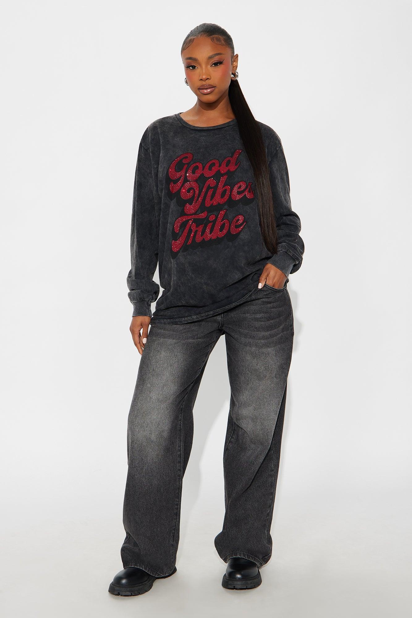 Good Vibes Tribe Washed Long Sleeve Tee - Grey Mineral Wash Female