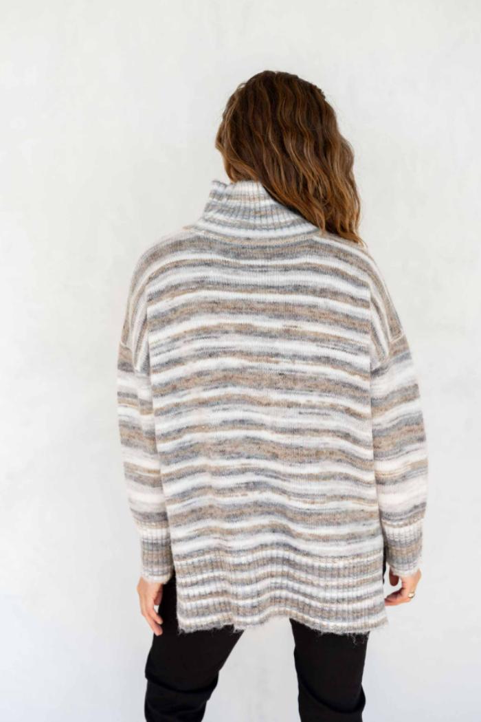 This multi-colored, space-dyed sweater is called Good Vibrations for just that reason. Each colorful wavelength on the body of this relaxed style adds the little layer of pop you need. Details are important here—the complimentary turtleneck pairs well with our signature drop shoulder sleeve and small split sides for comfort and ease. Everyone could use a little more Good Vibrations.