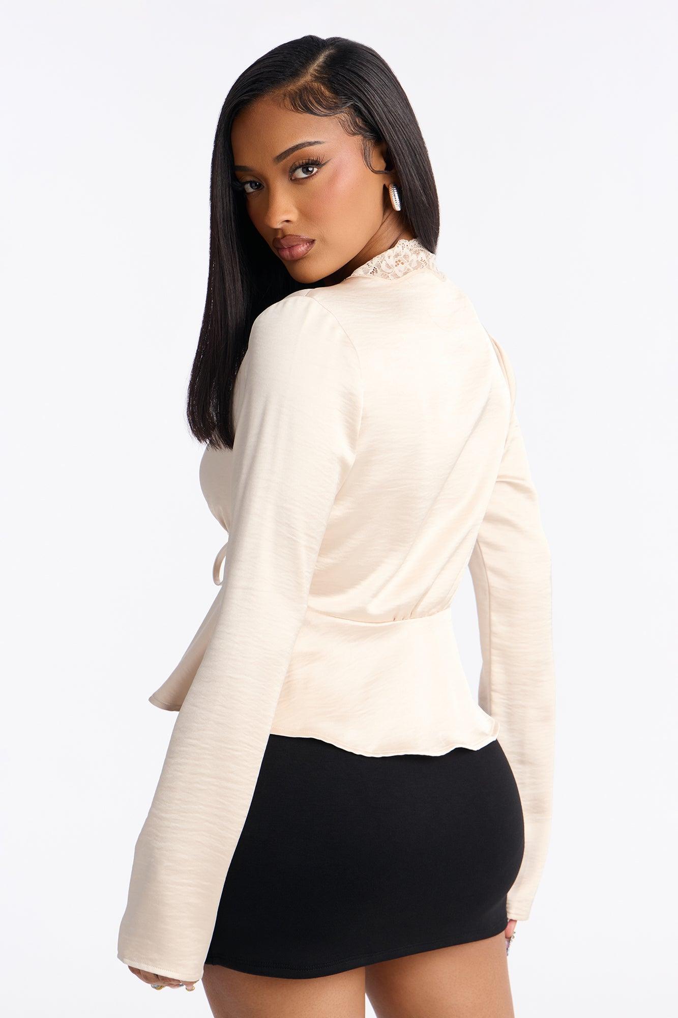 Got That Glow Lace Trim Satin Flyaway Top - Champagne Female