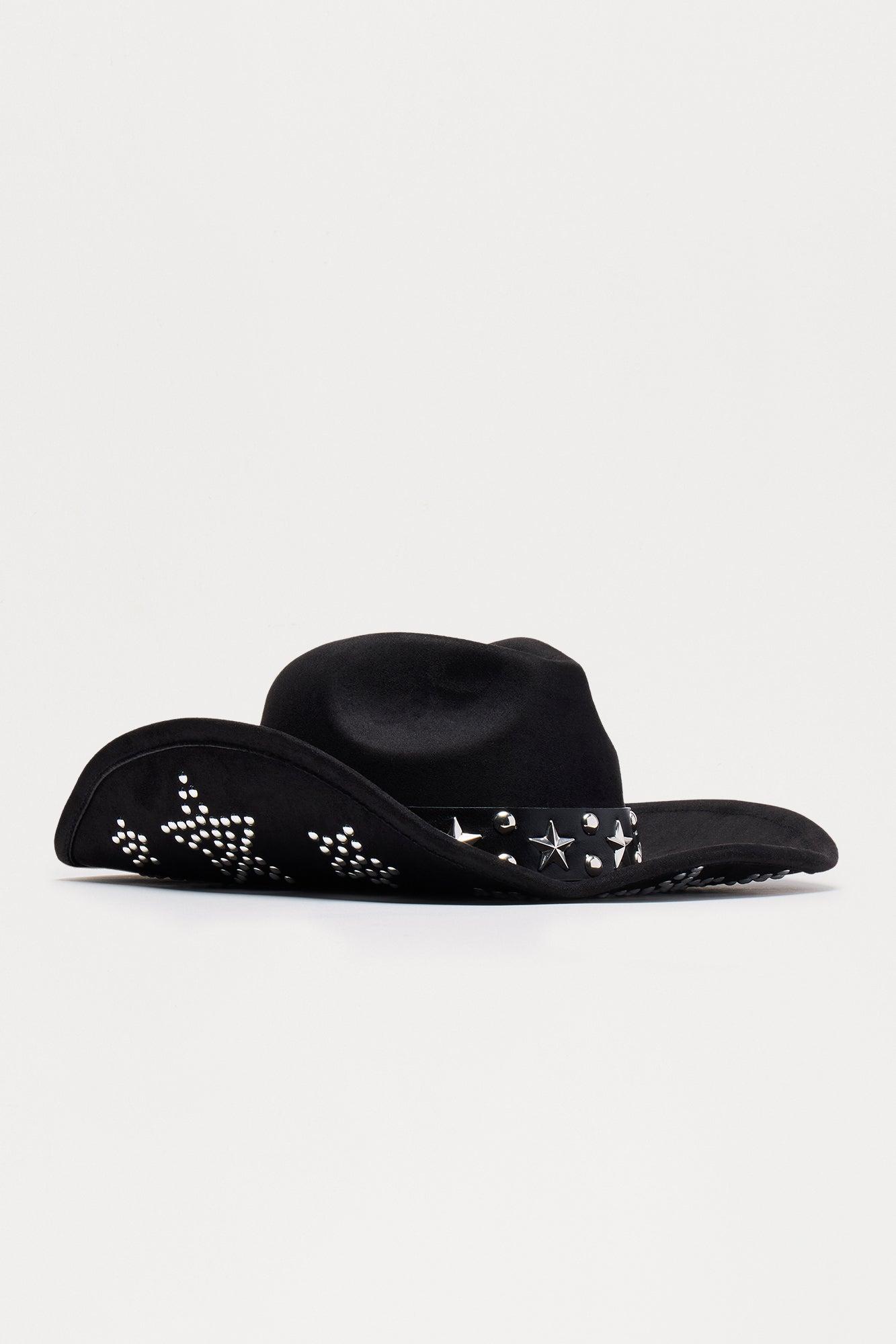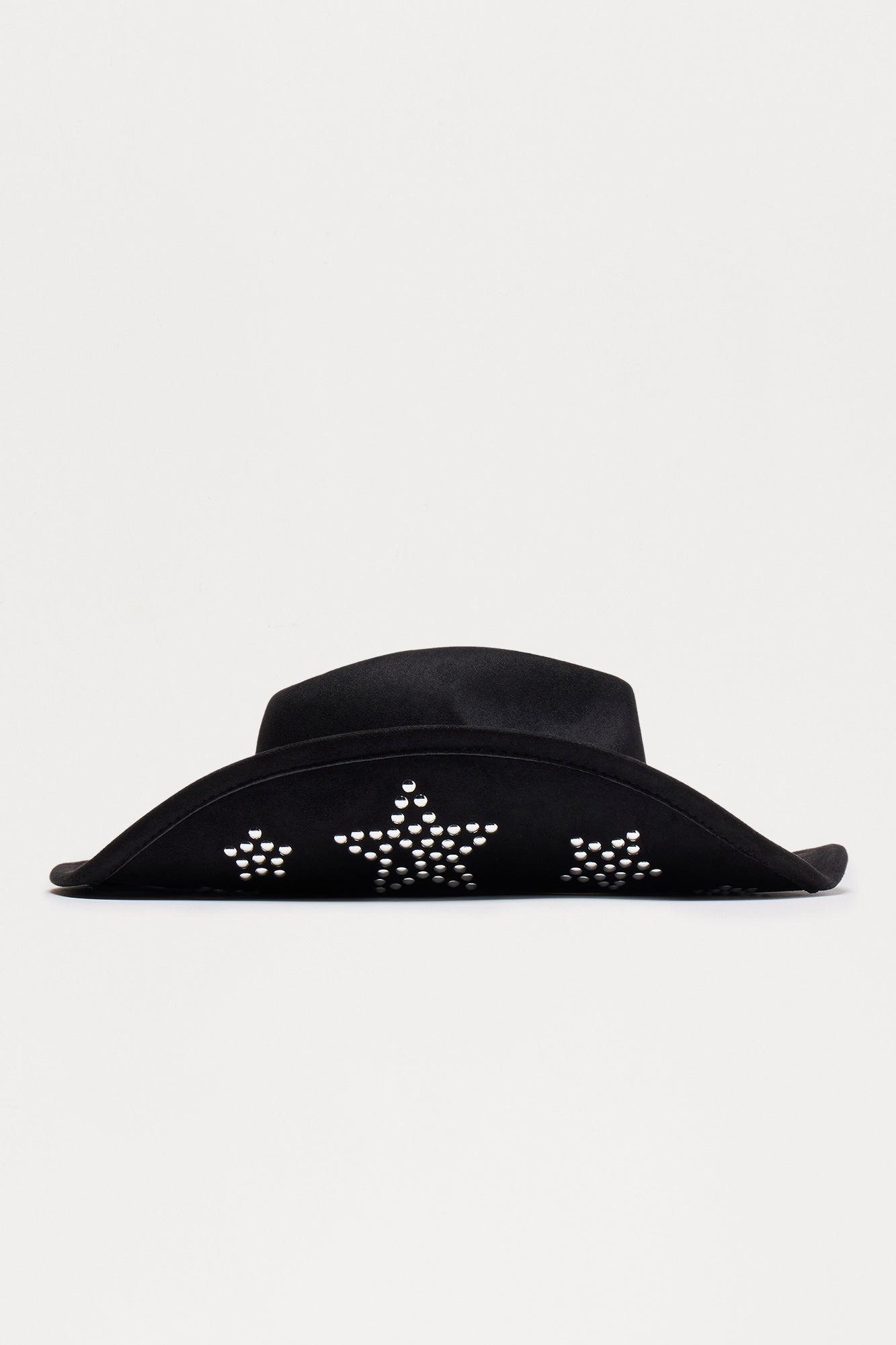 Available In Ivory And Black. Cowboy Hat Studded Detail Star Detail Poly Blend Material Final Sale Imported California Proposition 65WARNING: Cancer and Reproductive Harm - www.P65Warnings.ca.gov.