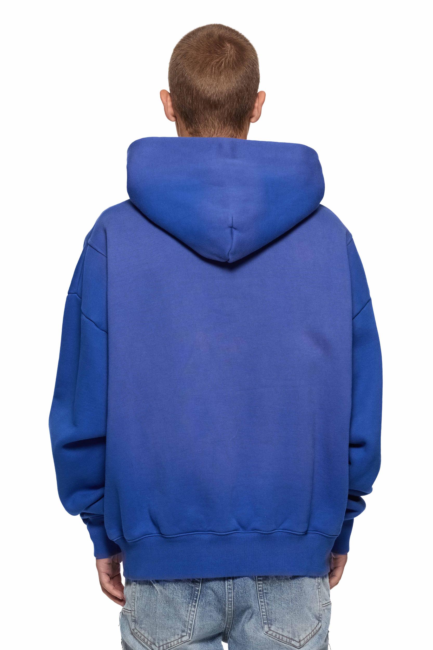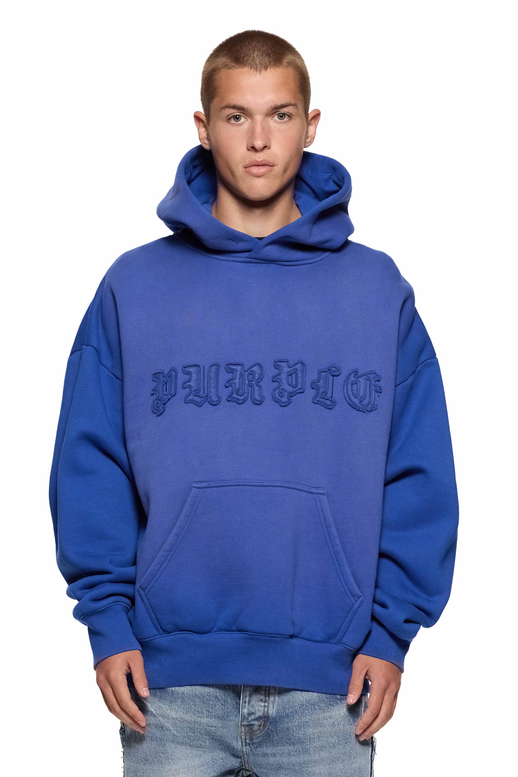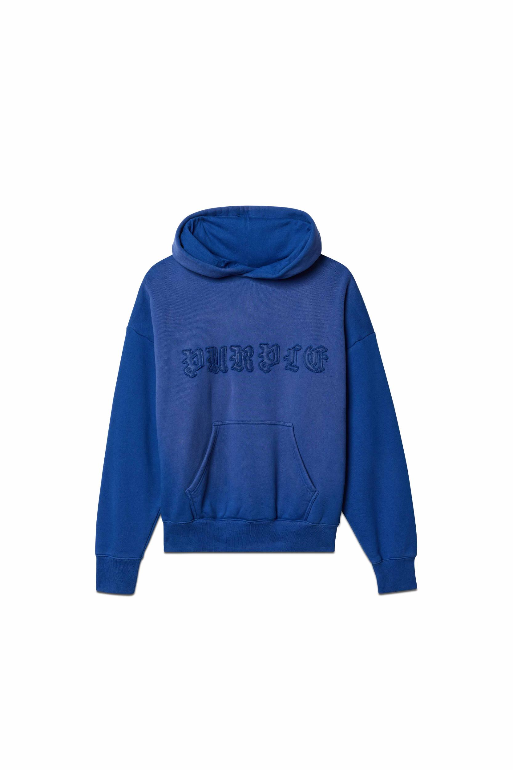 This core hoodie is defined by gothic Purple Brand logo lettering across the chest. It’s cut for an oversized fit from blue heavyweight fleece, and features a large kangaroo pocket as well as ribbing at the cuffs and hem. Fall Winter 2024 White Label 100% Cotton 28 1/4" Length, 27 1/2" Chest, 36 7/8" Sleeve Dropped Shoulder Coated Self Applique