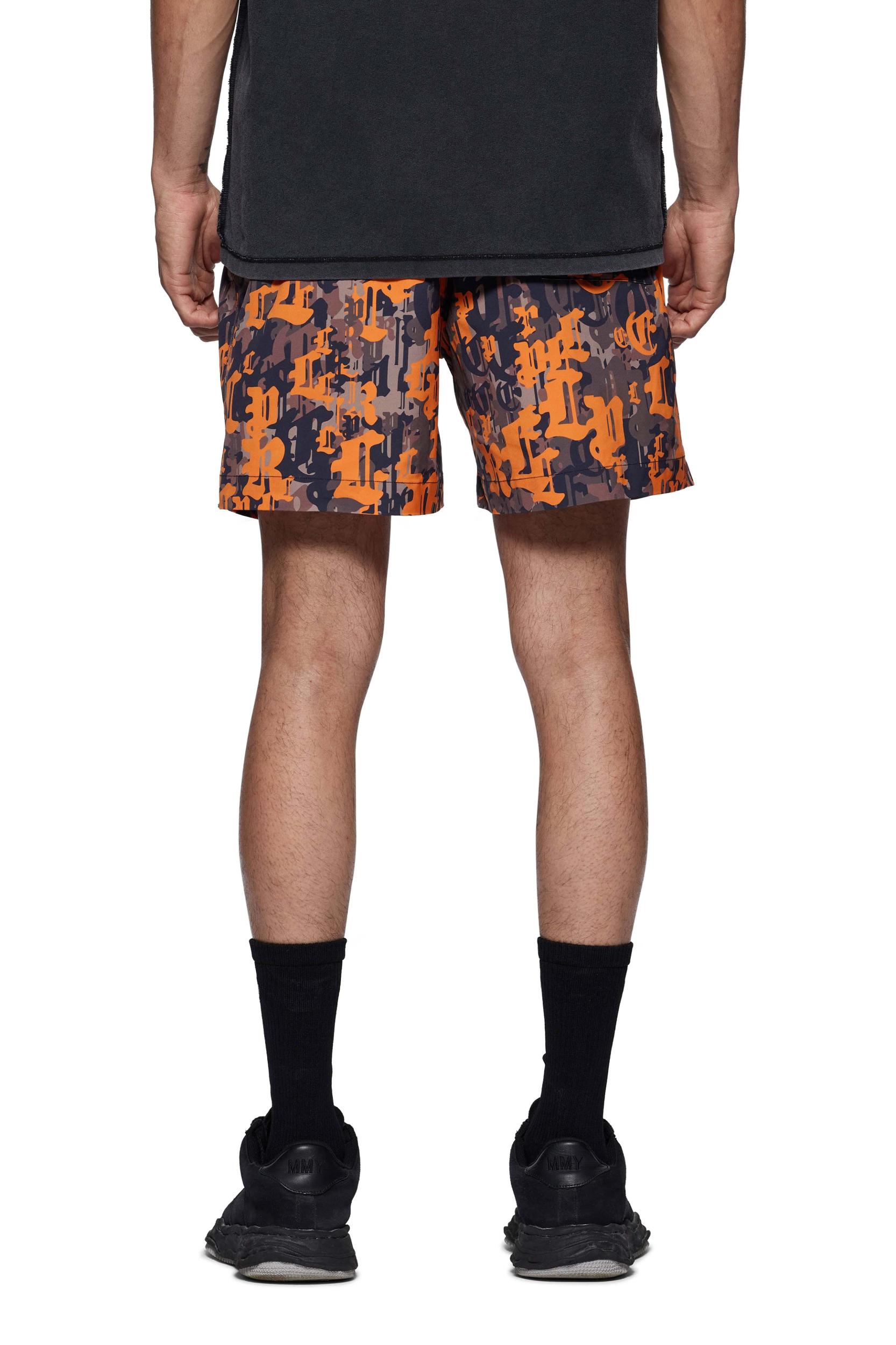 Constructed from a moisture-wicking, odor-reducing stretch polyester, these lightweight shorts are fully lined for a comfortable fit. The pair is cut from gothic P camo and features a pull-on waist with drawcords. Pre Spring 2025 White Label 100% Polyester 11 1/2" Front Rise, 5 3/4" Inseam, 13 1/4" Leg Opening Regular Fit Woven Polyester with Water Repellent Treatment Raised Matte Silicone Elastic Waistband with Flat Drawcord
