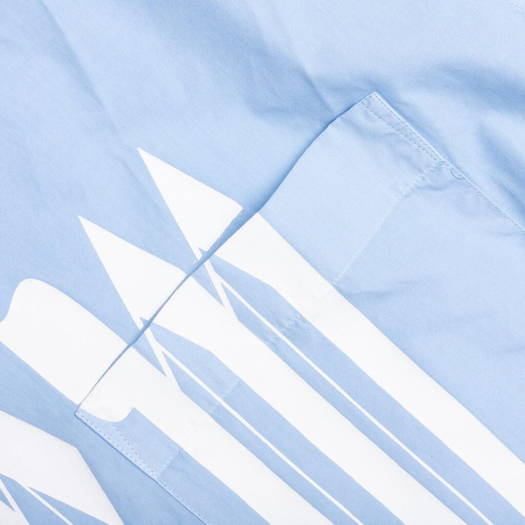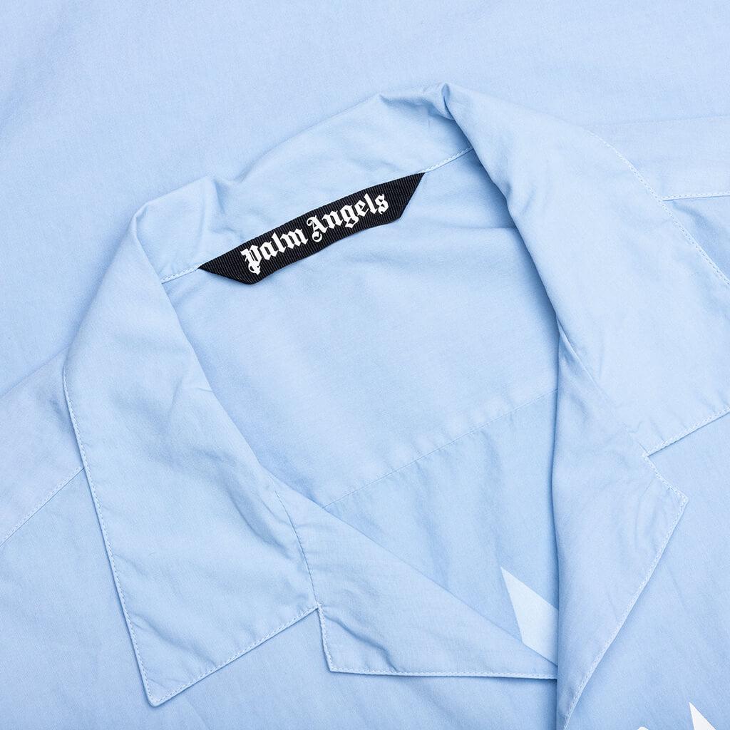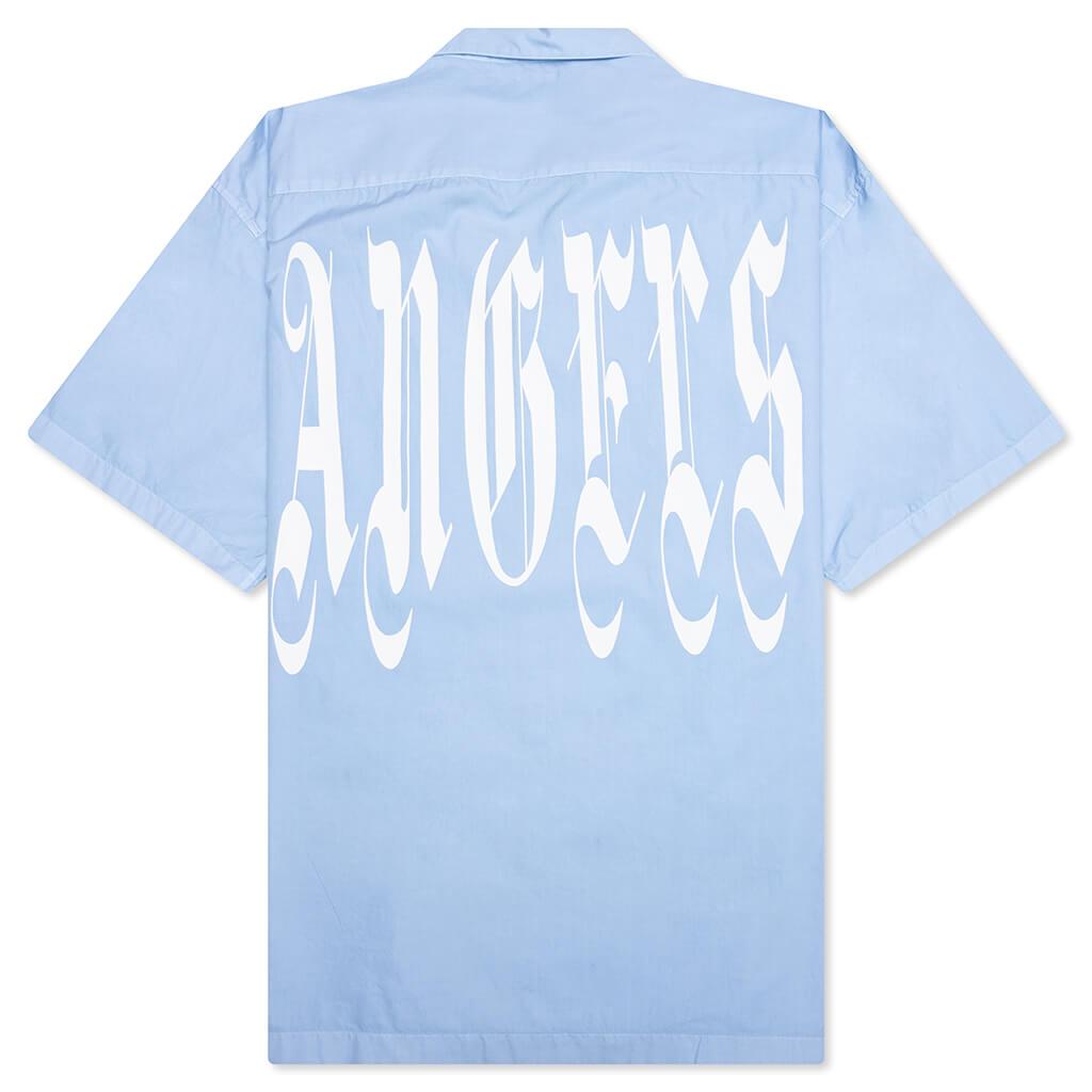The Gothic Logo Shirt S/S in Light Blue offers a clean and polished look with a modern edge. Crafted from soft cotton poplin, it features a spread collar and button closure for a classic silhouette. A bold logo print on the front and back adds a statement touch, while the patch pocket enhances its versatility. % Cotton poplin Spread collar Button closure Logo printed at front and back Patch pocket Style No: PMGG007F24FAB0044001