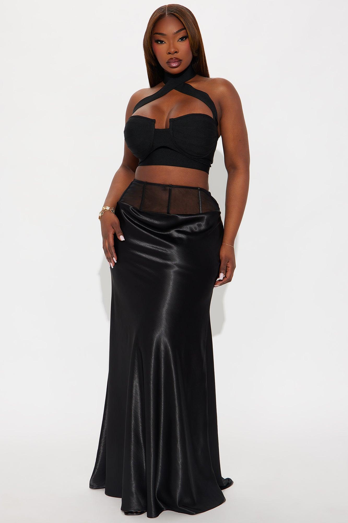 Gothic Nights Corset Satin Maxi Skirt - Black Female