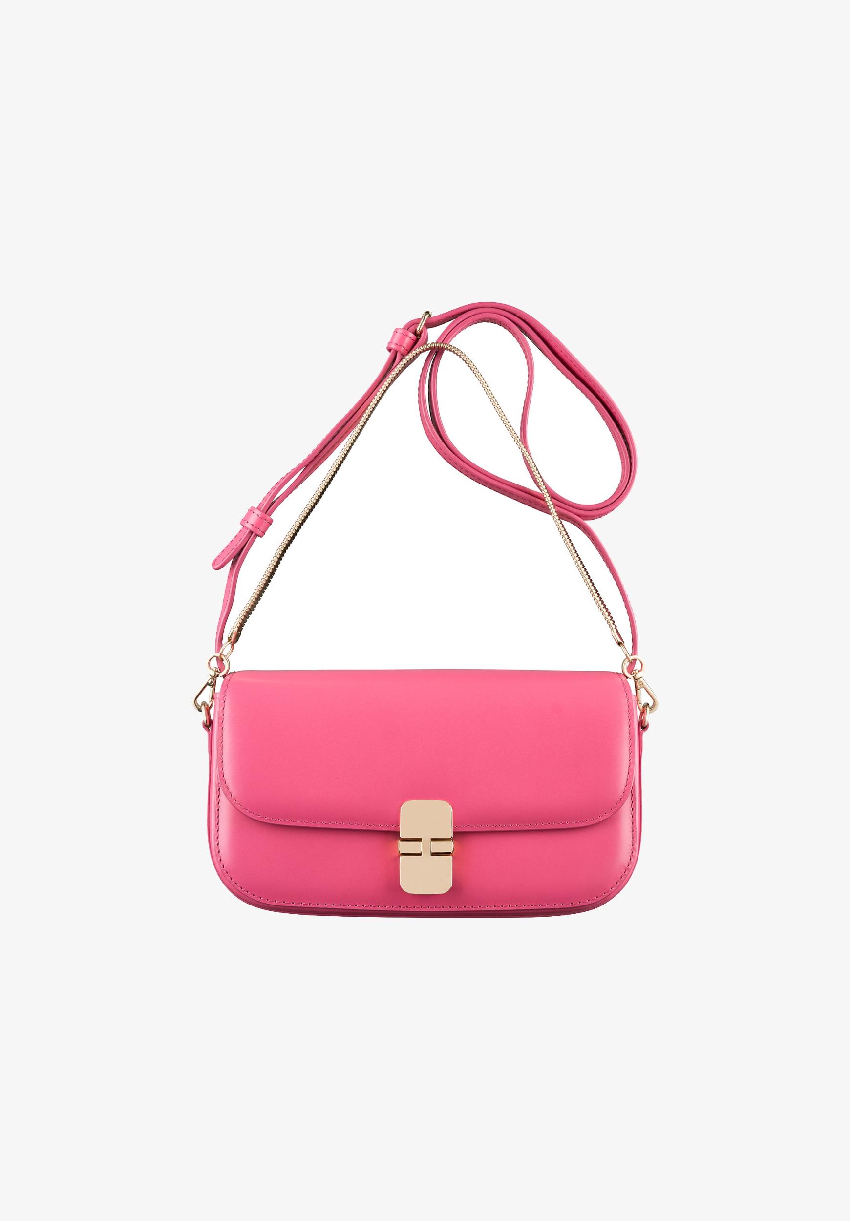 - Bag in smooth vegetable-tanned leather. - Signature goldtone clasp of the Grace line. - Two interior pockets. - Adjustable leather shoulder strap to wear the bag on the shoulder or across the chest. - Metal handle to carry the bag by hand. - Flap lining in cowhide suede split. - Embossed goldtone 'A.P.C. Rue Madame Paris' logo.