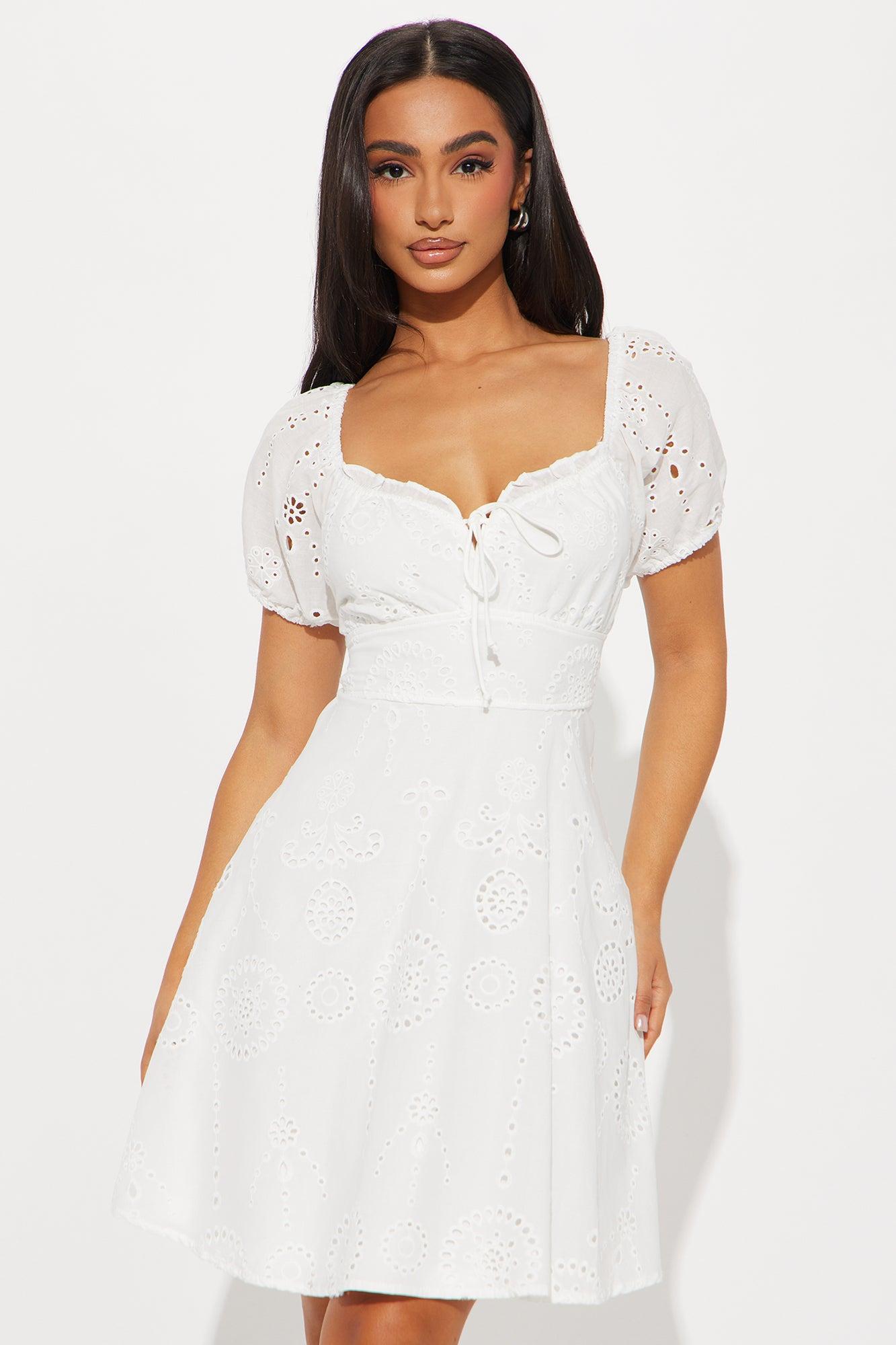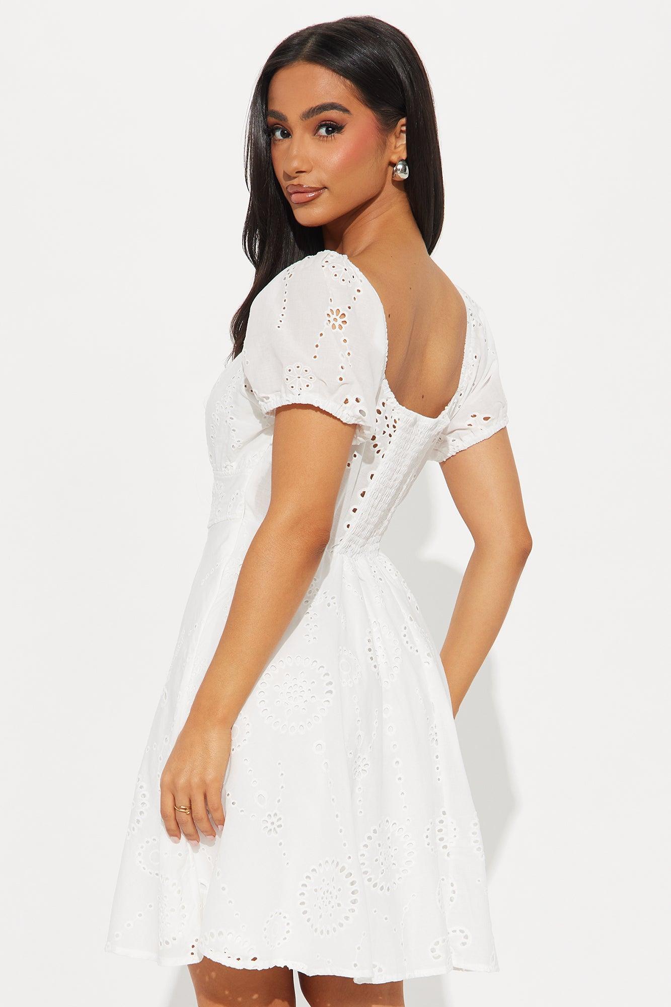 Grace Eyelet Mini Dress - White