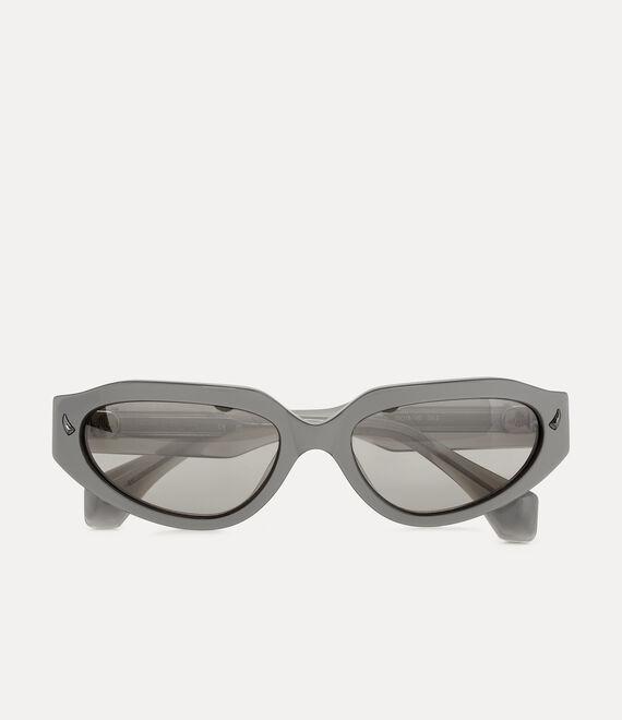 The Grace sunglasses offer a vintage-inspired oval silhouette, characterised by a bold, flared outer edge, drawing inspiration from the glamour and timeless icons from Studio 54. Offered in a shiny silver finish, the design is elevated by gradient lenses and horn-encrusted embellishments adorning the outer rim - paying homage to Vivienne's iconic Horn Alice band.