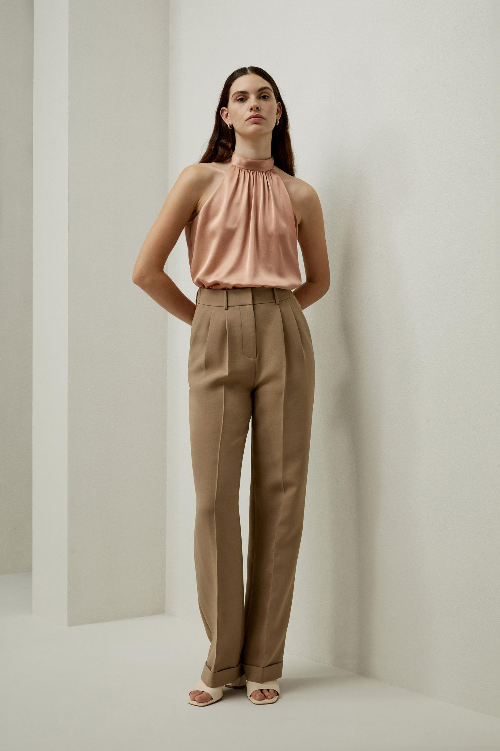Indulge in luxury with our Graceful Breeze Silk Halter Top, crafted from 100% silk charmeuse. Its smooth satin finish drapes exquisitely, flattering your figure while keeping you comfortable. The sleeveless halter neck tie design showcases your shoulders.