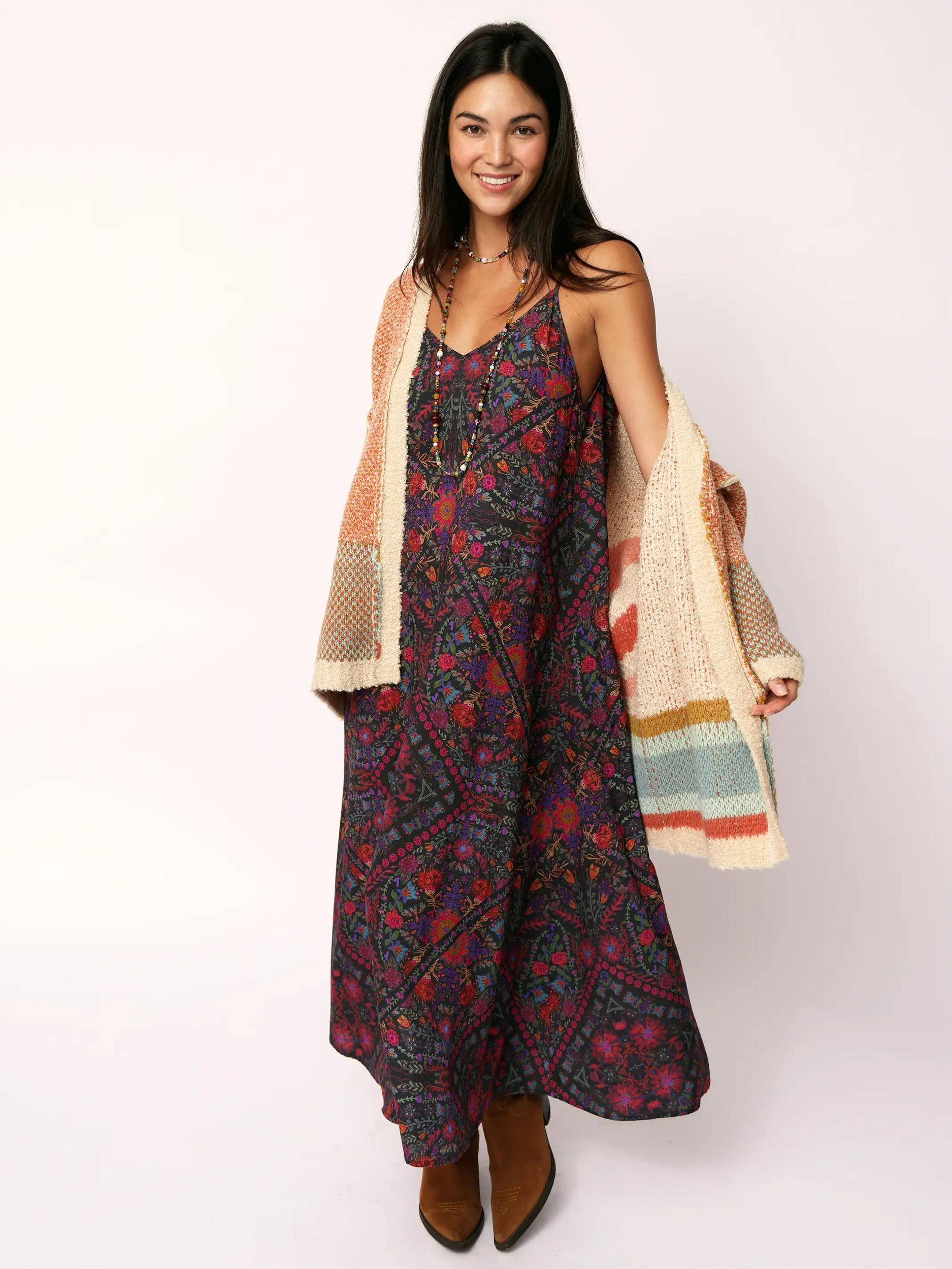 Gracie Slip Maxi Dress - Mandala Charcoal Floral