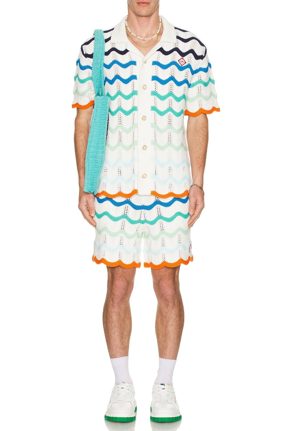 shirtSelf 1: 100% cottonSelf 2: 95% viscose, 5% polyester / Made in China / Hand wash / Front faux pearl button closure / Open knit fabric / Garment is made with a semi-sheer fabric, undergarments can show through / Our Style No. CBLN-MS136 / Manufacturer Style No. MS25-KW-980-01-EX / Model is wearing size M.