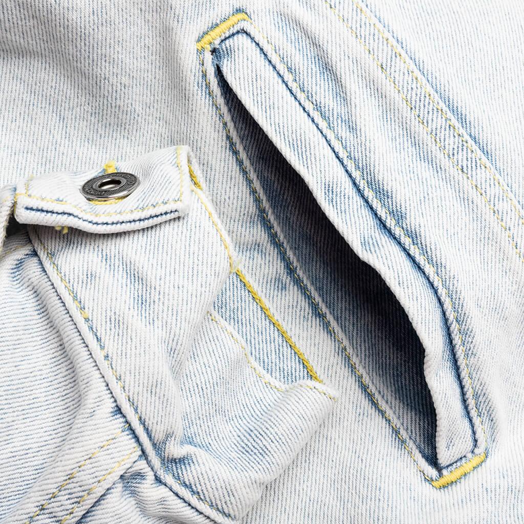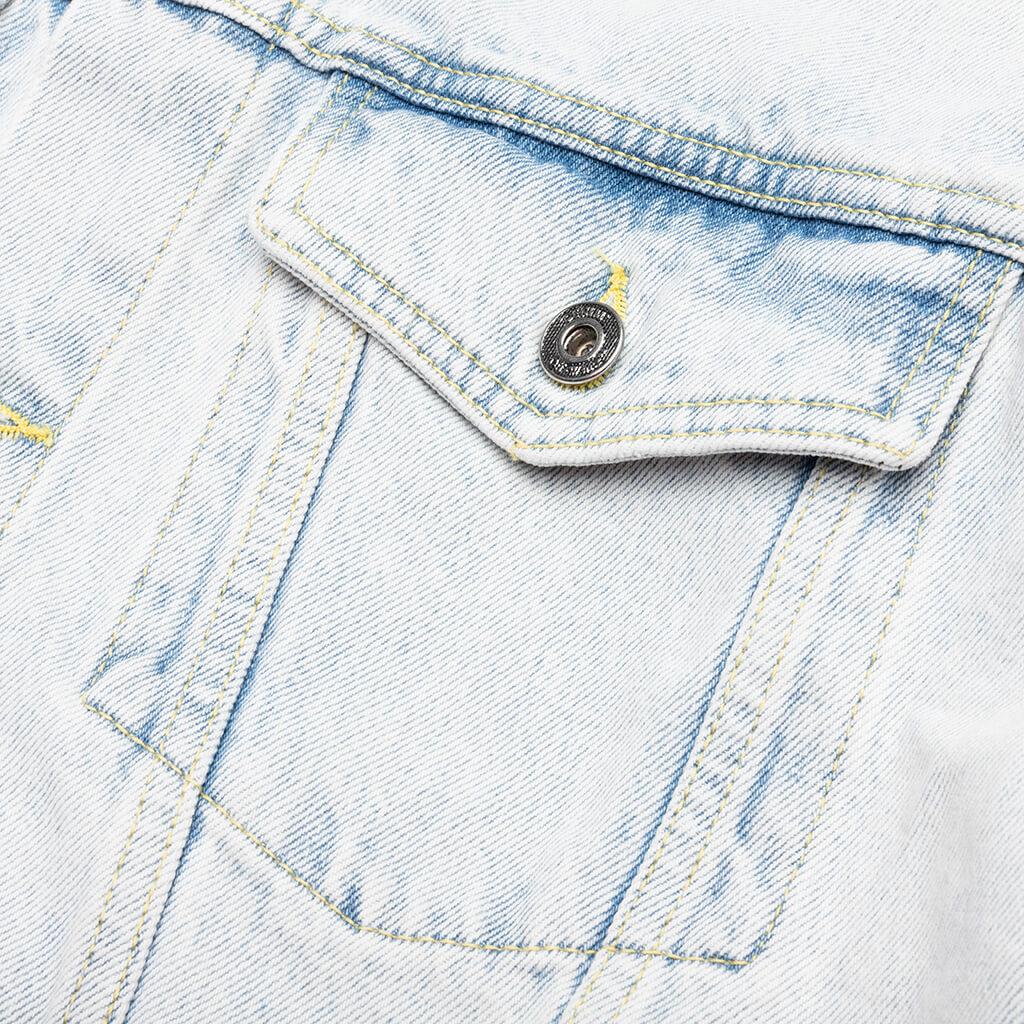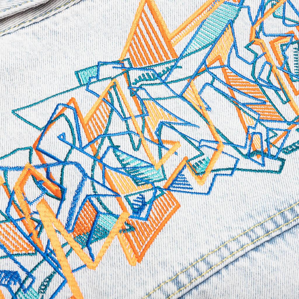 Off-White introduces the Graffiti EMB Denim Skate Jacket. Composed of cotton, the jacket features an elevated graffiti style print at the rear along with a logo patch for vibrancy. The button-up closure, pointed collar, and welted chest pockets finish the design. 100% cotton Button-up closure Pointed collar Welted chest pockets Printed logo graphics Style No: OMYE077S23DEN0014066