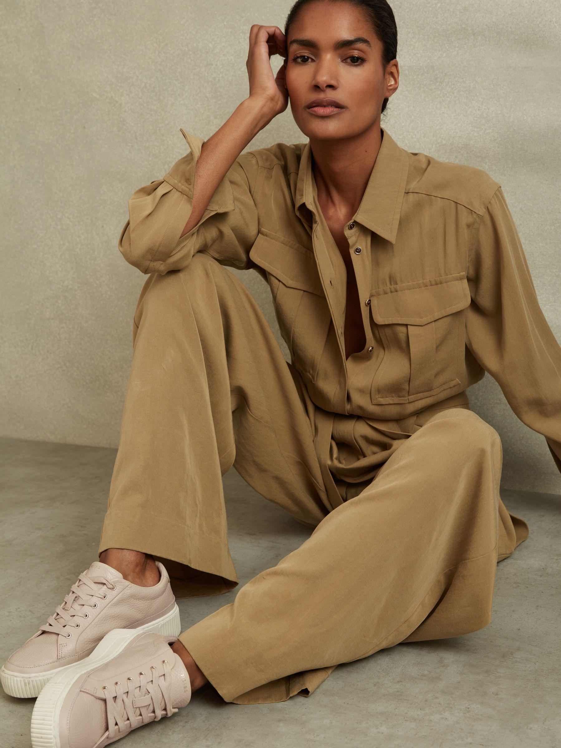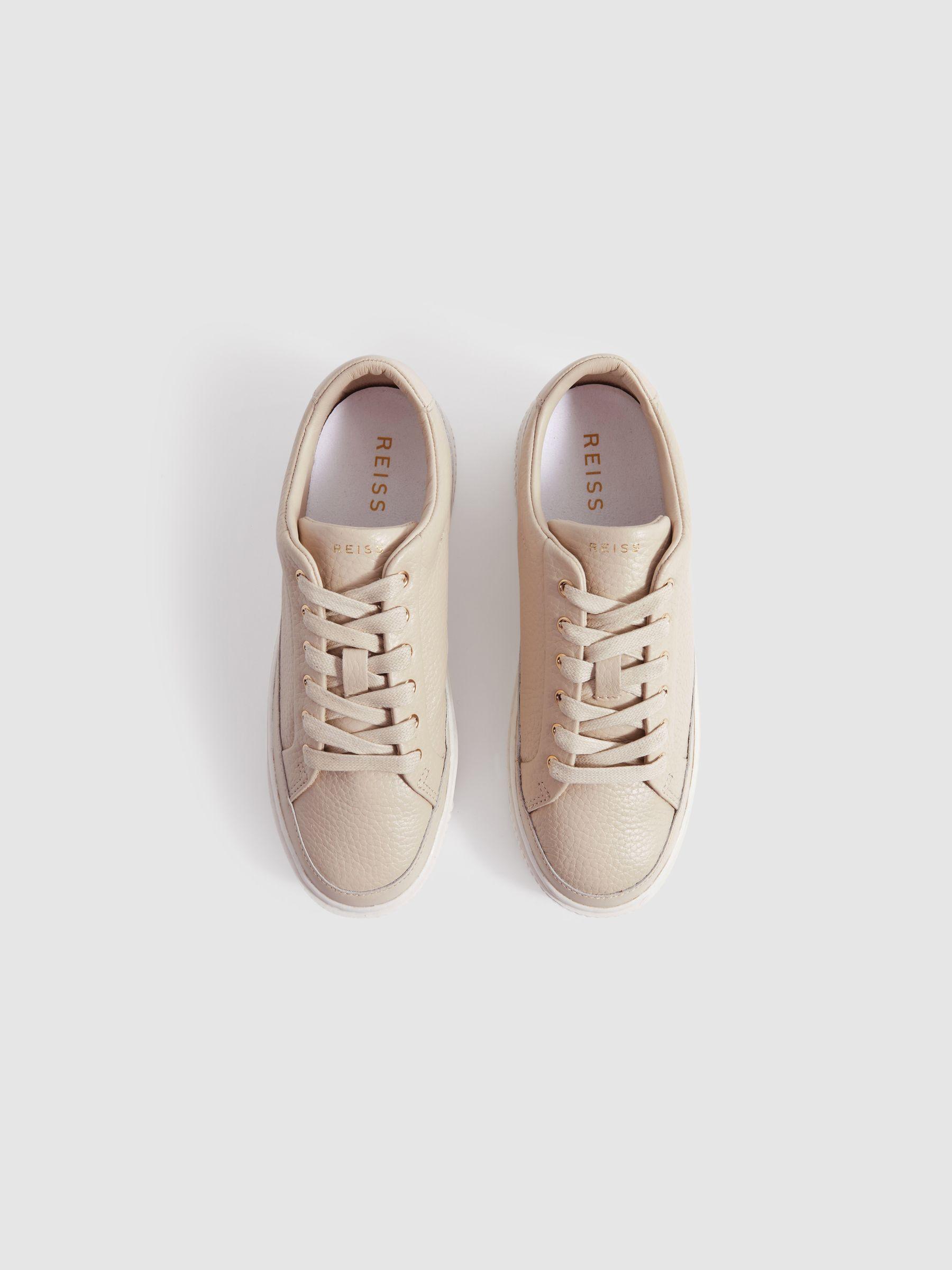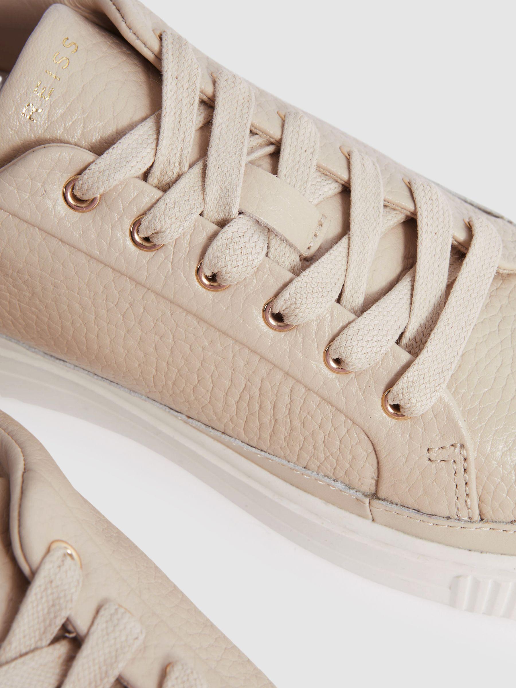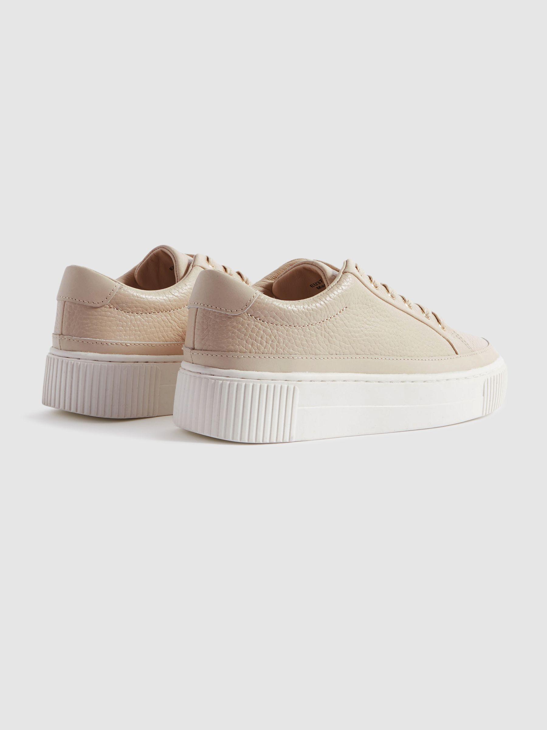 Grained Leather Platform Trainers in Nude