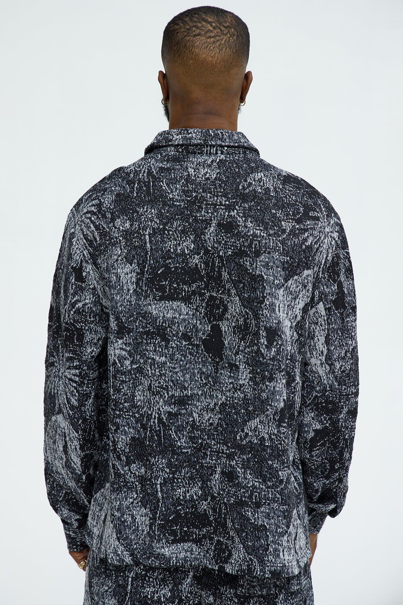 Grainy Tropics Knitted Button Down Shirt - Black/combo