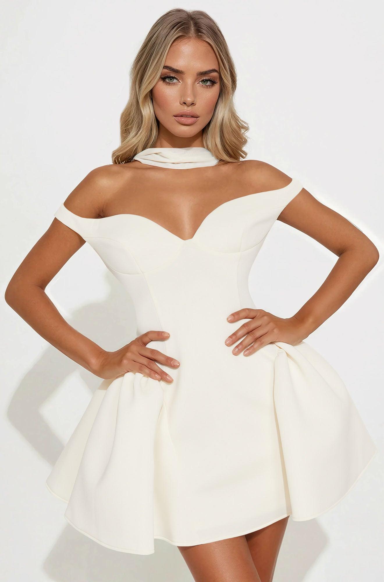 Grand Beauty Off Shoulder Mini Dress - Cream