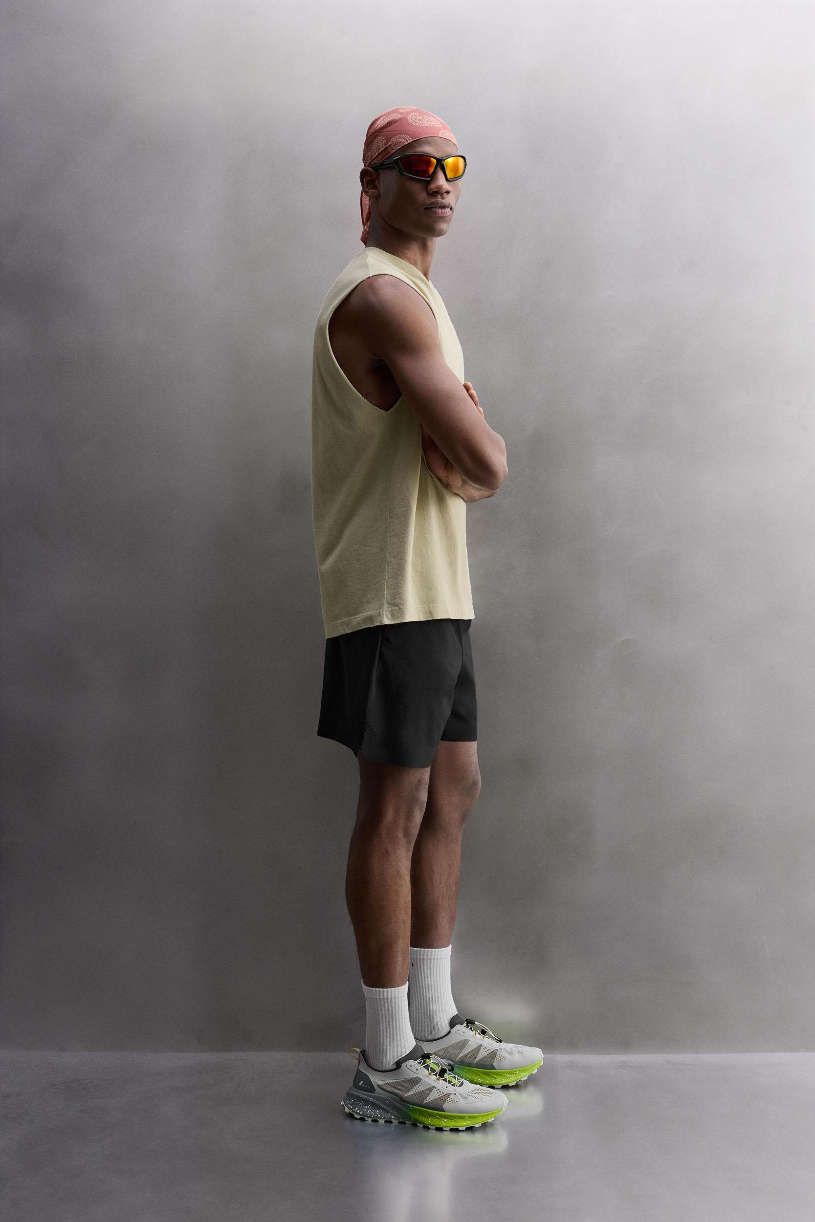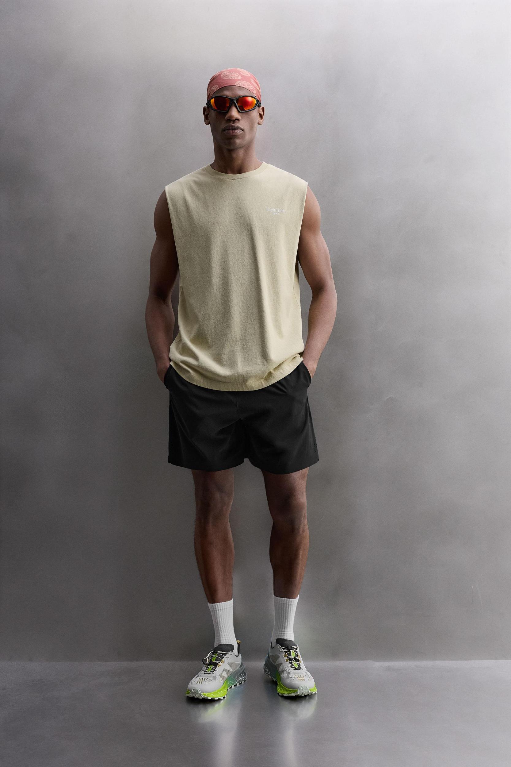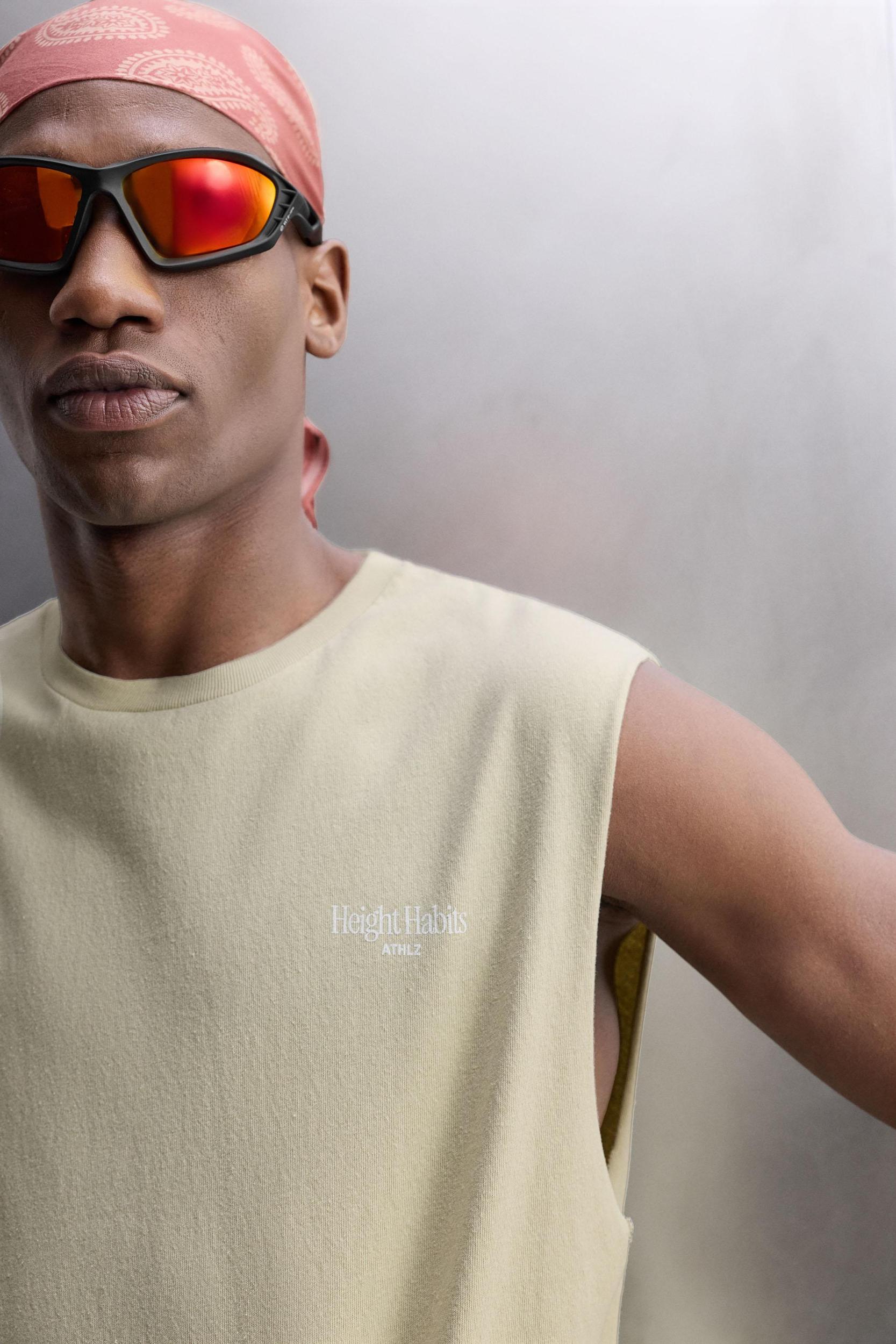Relaxed fit T-shirt made of cotton fabric. Round neck and sleeveless. Contrasting combined prints on the front and back. Zara Athleticz.