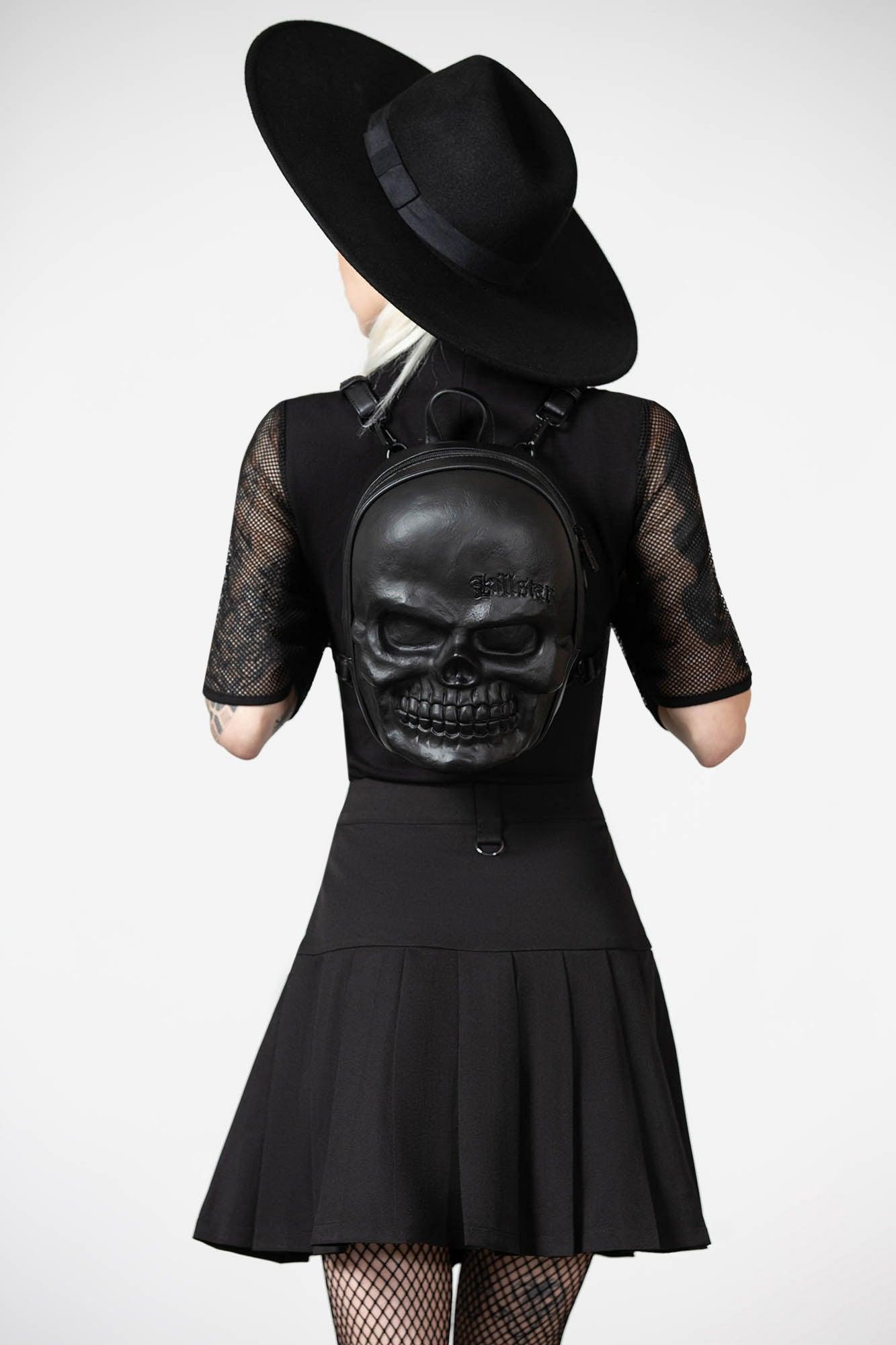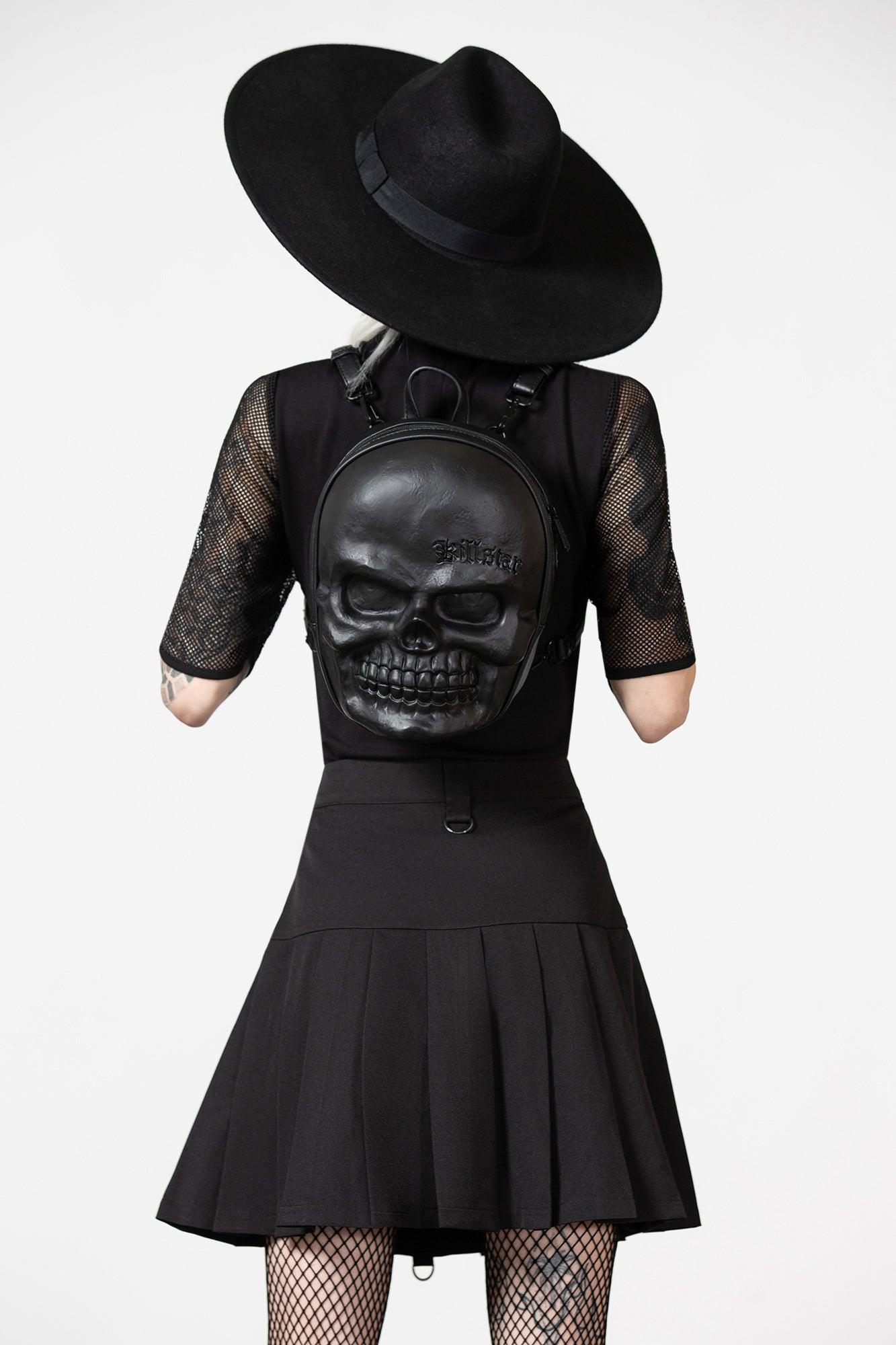 GRAVE DIGGER.- Statement sculpted skull backpack.- Intricate detailing.- Adjustable, detachable backpack straps.- Chain shoulder strap.- Faux leather detailing.- Grab handle.- Fully lined.- Inside zip pocket.- Height 26cm/10.2", Width 22.5cm/8.8", Depth 13cm/5.1".with KILLSTAR branding, 100% PU.