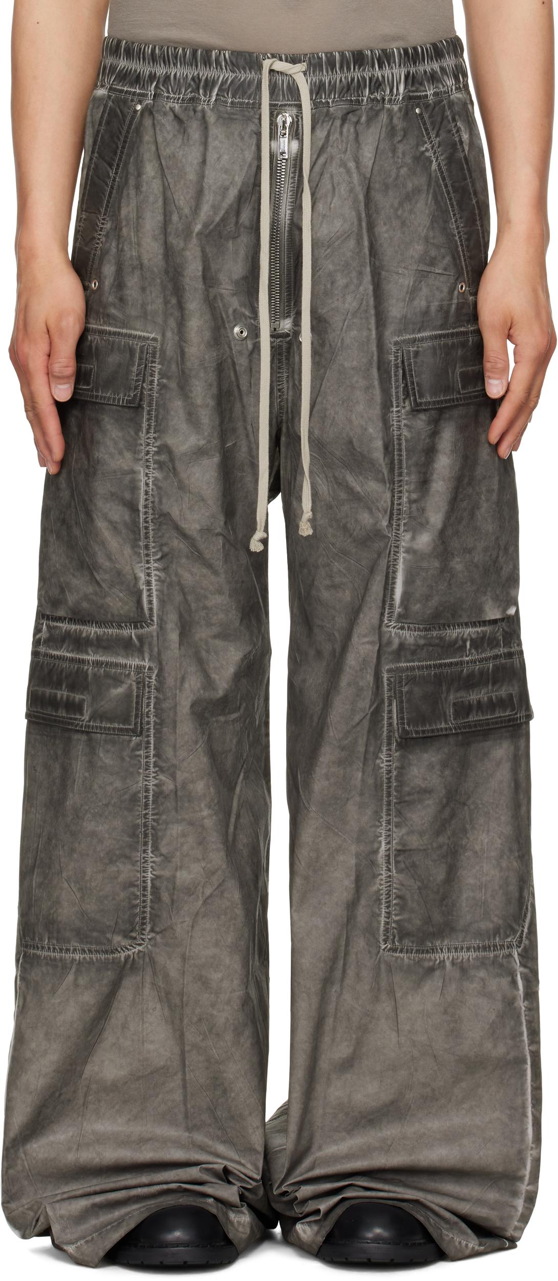 Foil-coated GOTS-certified organic cotton poplin cargo pants. Fading and creases throughout.