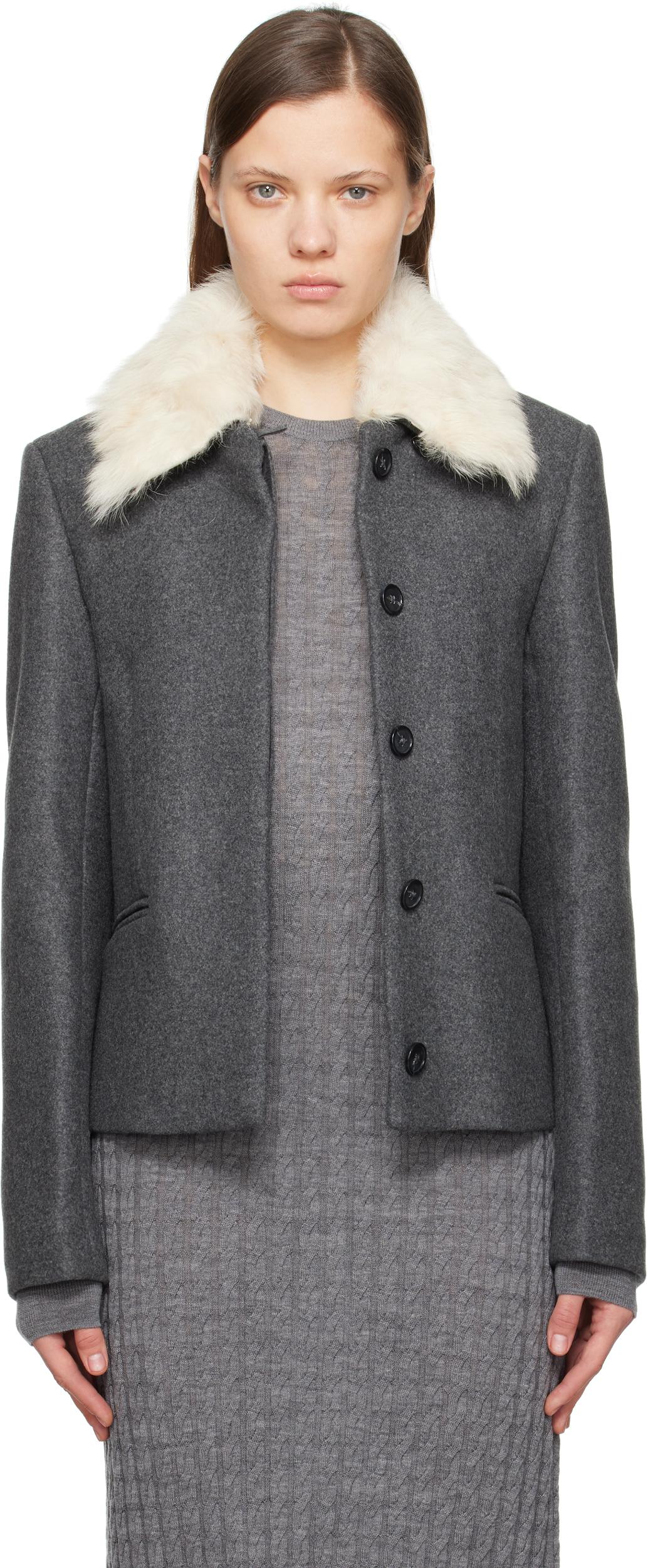 · Detachable shearling trim at spread collar