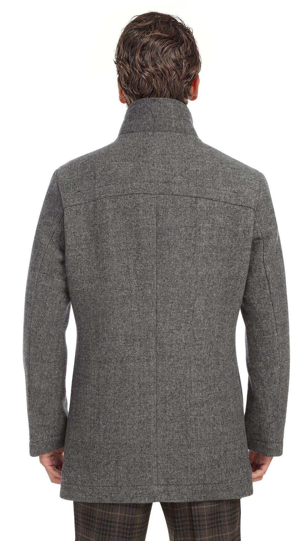 Gray Wool Blended Quilted Overcoat Slim Fit with Detachable Bib