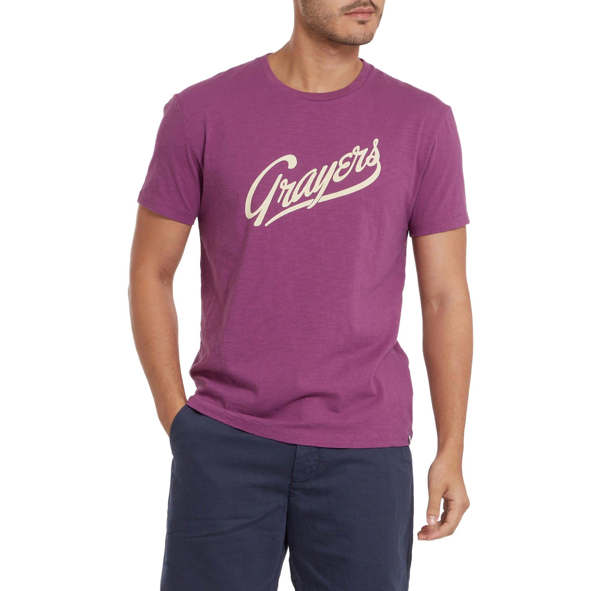 We've used traditional "discharge" printing techniques to bring our iconic images of Grayers to a soft and weathered slub jersey tee shirt. Just in time for summer. Rib collar Sand washed 100% Cotton (slub yarn) Imported