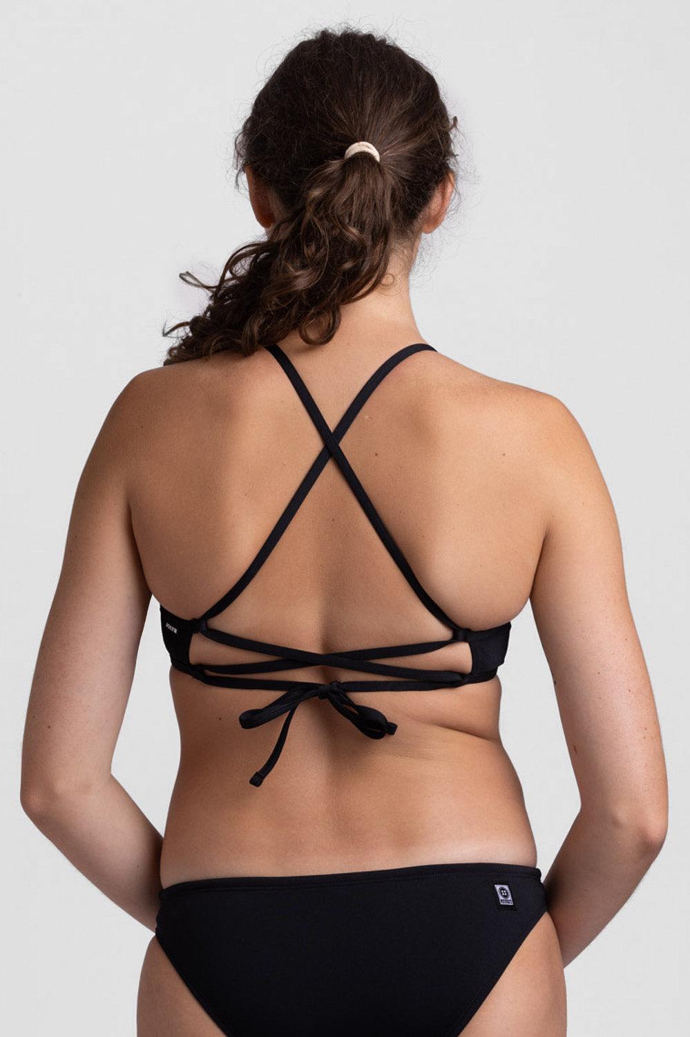 The Grayson swim top features a scooped front panel with a corset style lacing along the back. The tie-straps allow for easy adjustability during athletic activities. Features: Good for: Swim, Water Polo, Surfing, paddling, lifeguarding, ocean activities, pool activities, lifestyle Tie-back straps Lined for maximum privacy Full coverage Medium/High impact Tagless for maximum comfort Chlorine proof Pill-resistant 2-way stretch Reinforced stitching Fabric Composition: Foreverever Fabric 100% Polyester Elastic contains trace amounts of Latex Care Instructions: Hand wash cold Hang dry Do not iron, dry clean or bleach