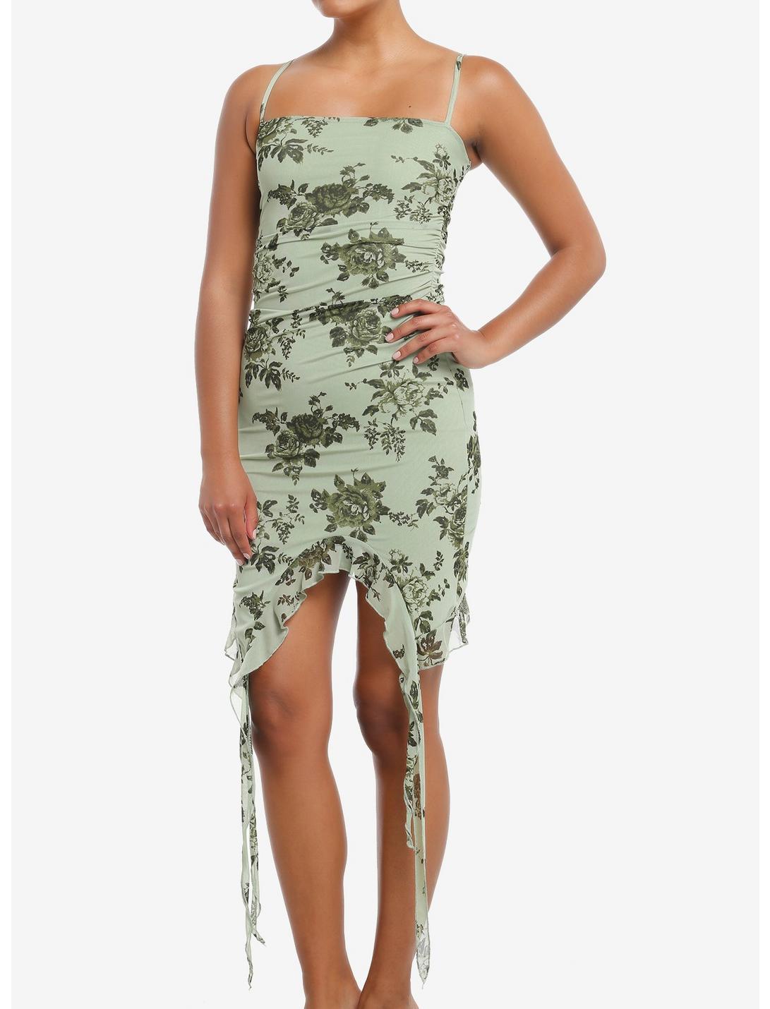 Look one with the forest with this dreamy dress on! It has cami straps and features an allover design of roses and branches. Comes with ruching on the sides and tendrils at the skirt.95% polyester; 5% spandexWash cold; dry lowLength: 53"Stretchy materialAdjustable strapsImportedListed in junior sizesModel is 5'9"Model wears size Small