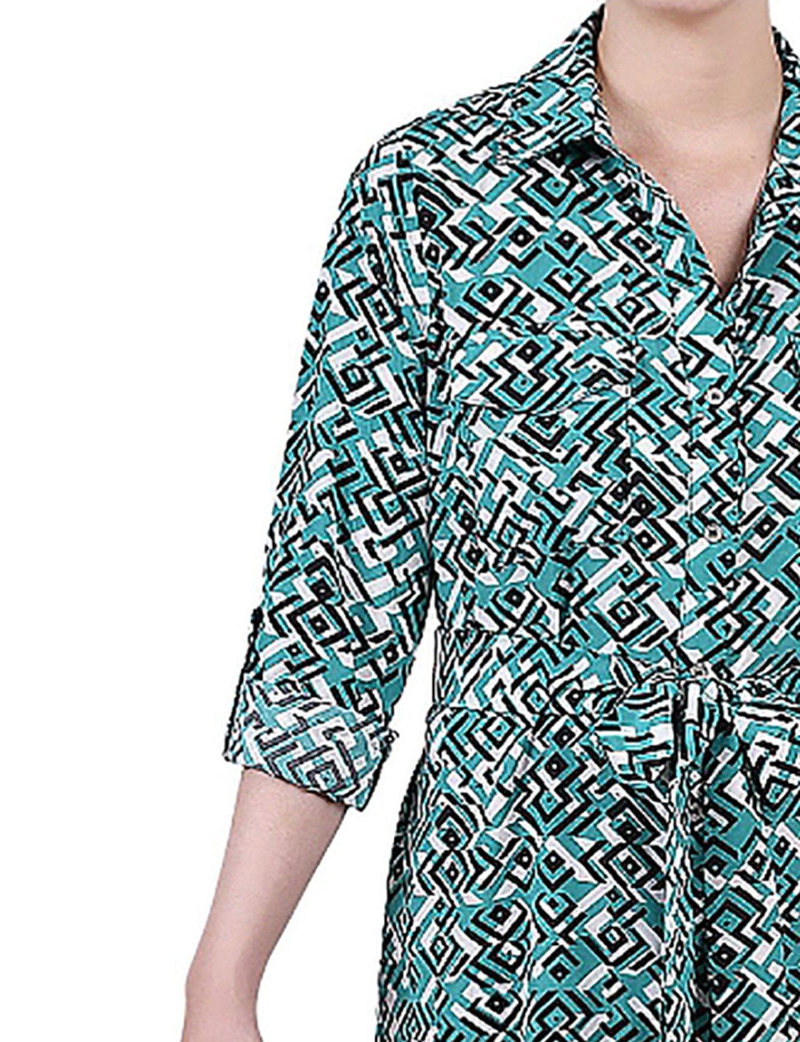 Emerald Multi 3/4 Roll Tab Belted Dress - Plus